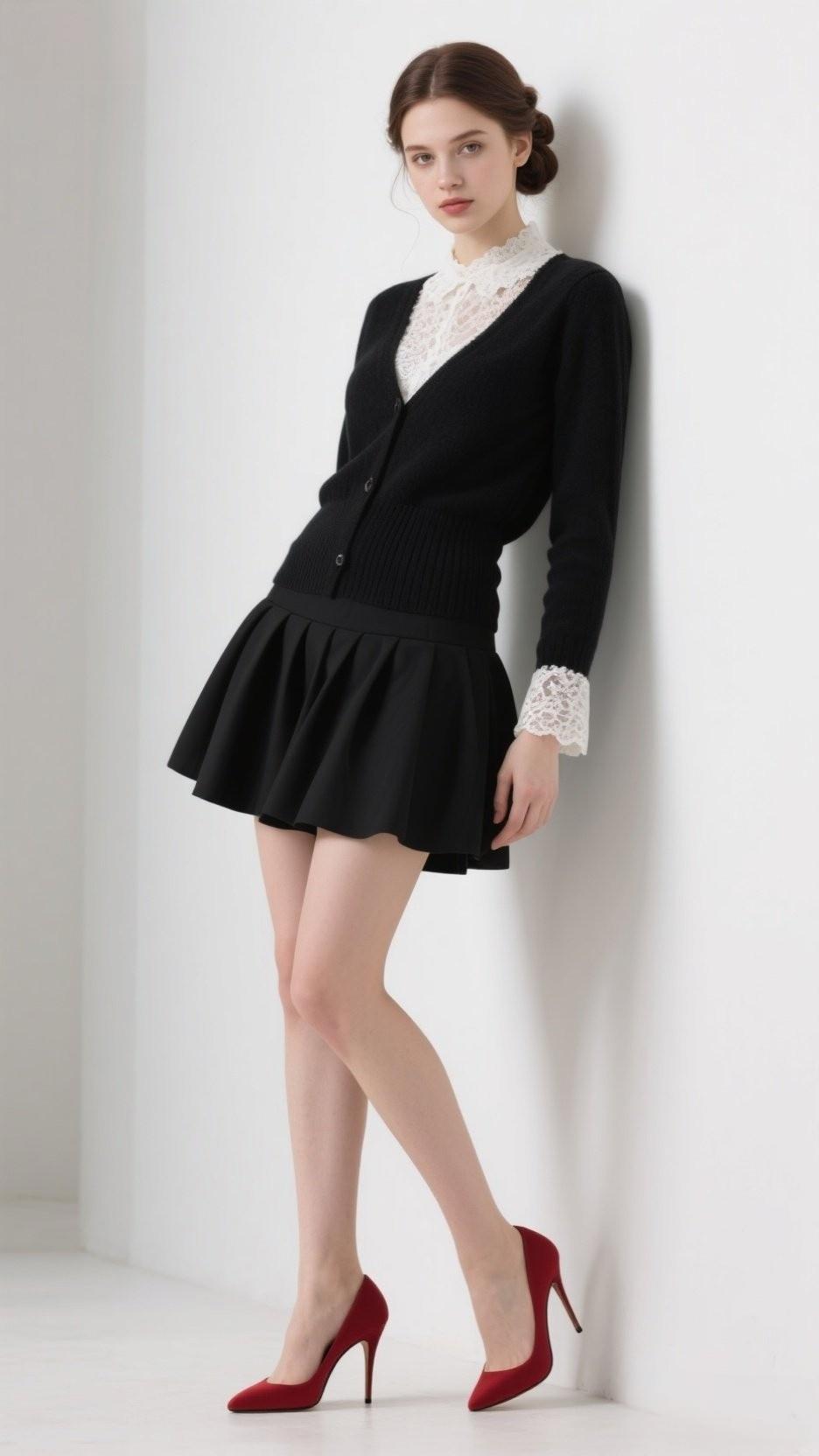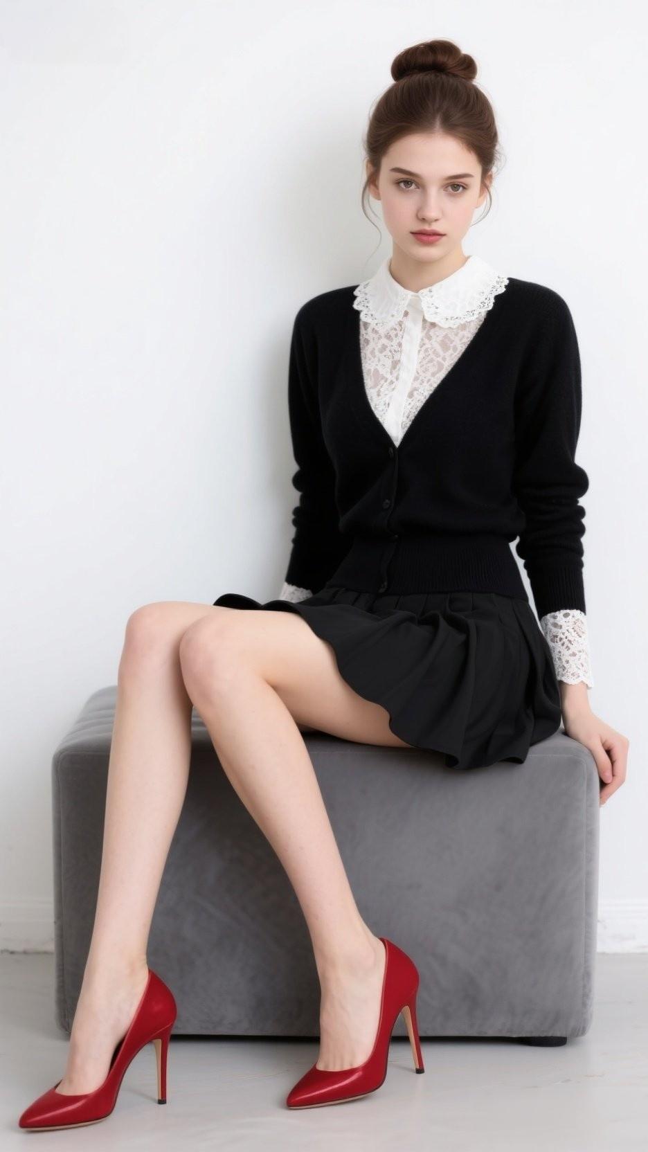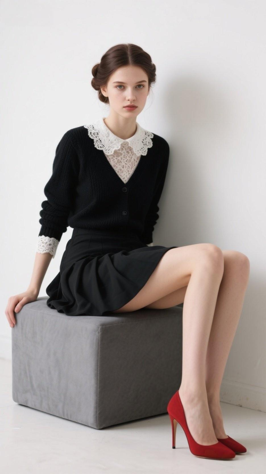 复古学院风穿搭,红黑配高跟鞋,优雅迷人!