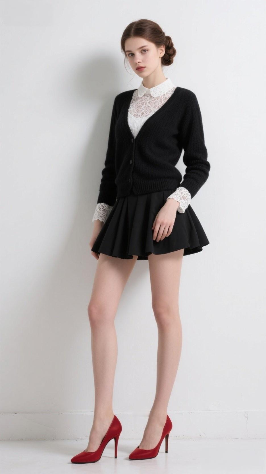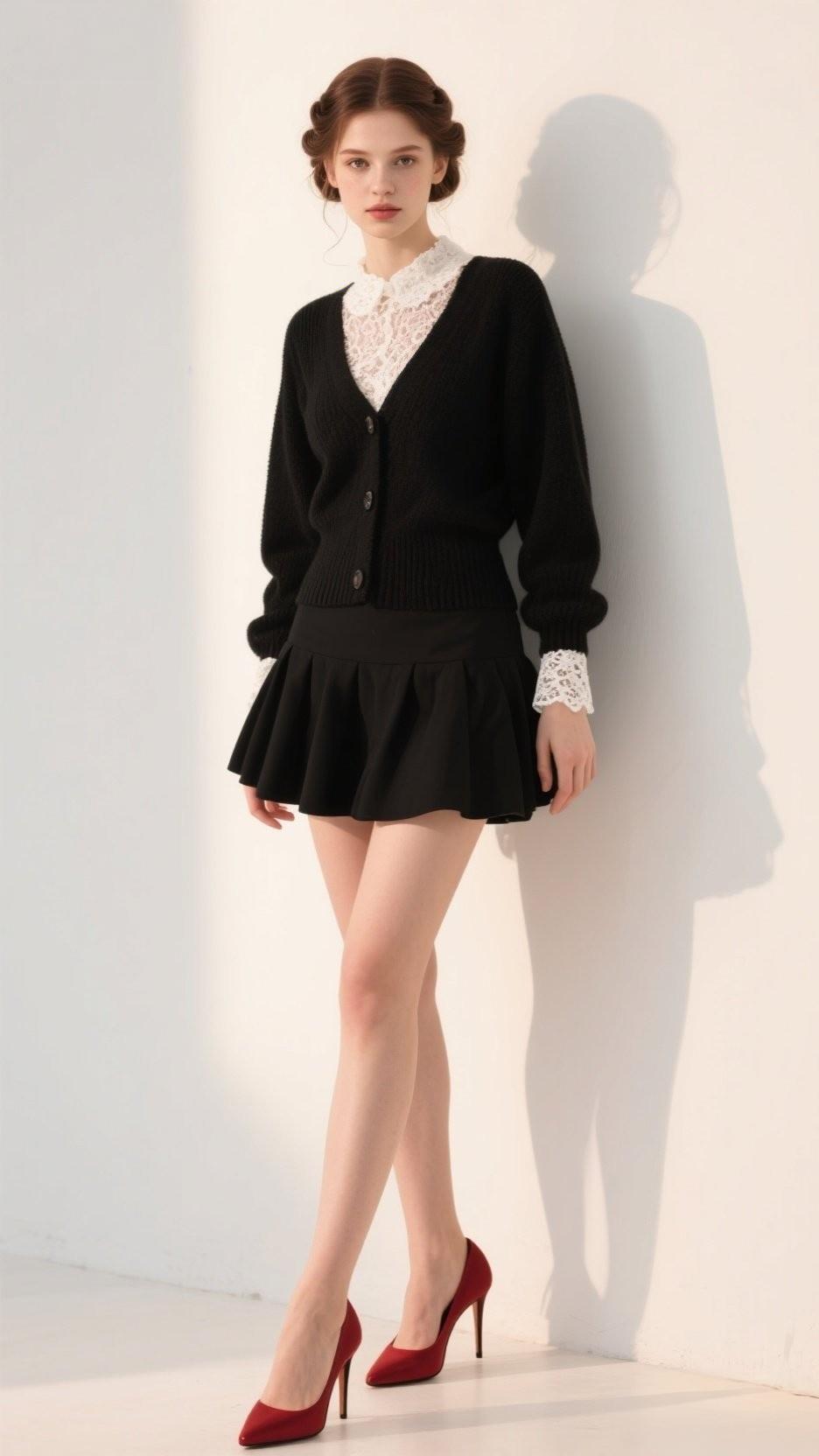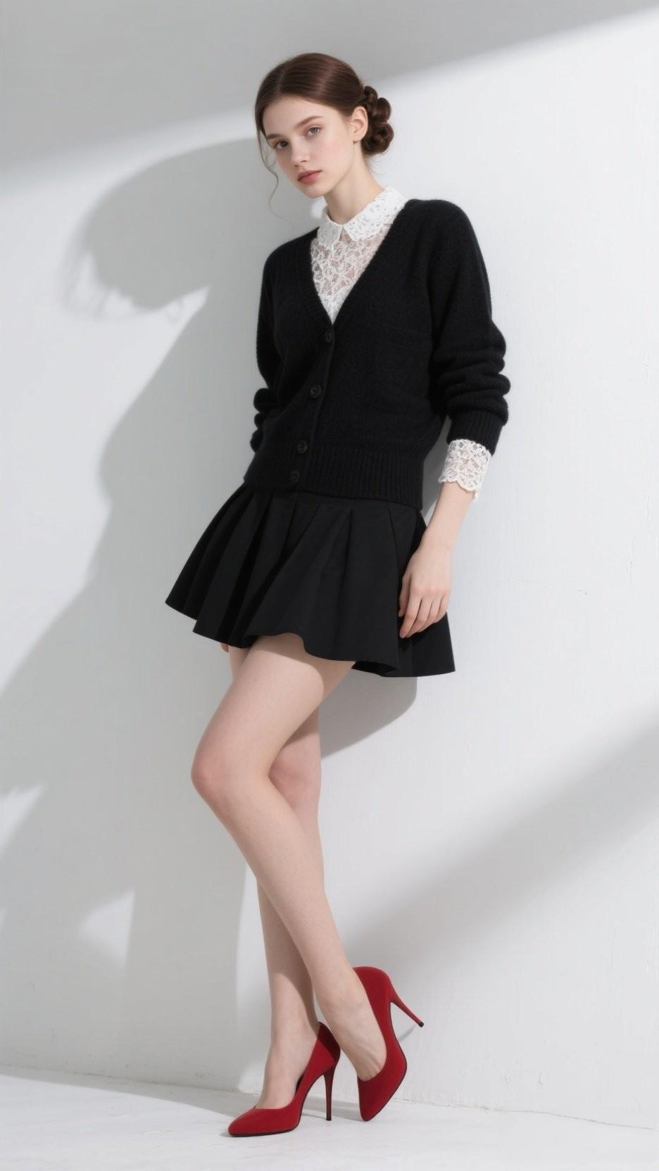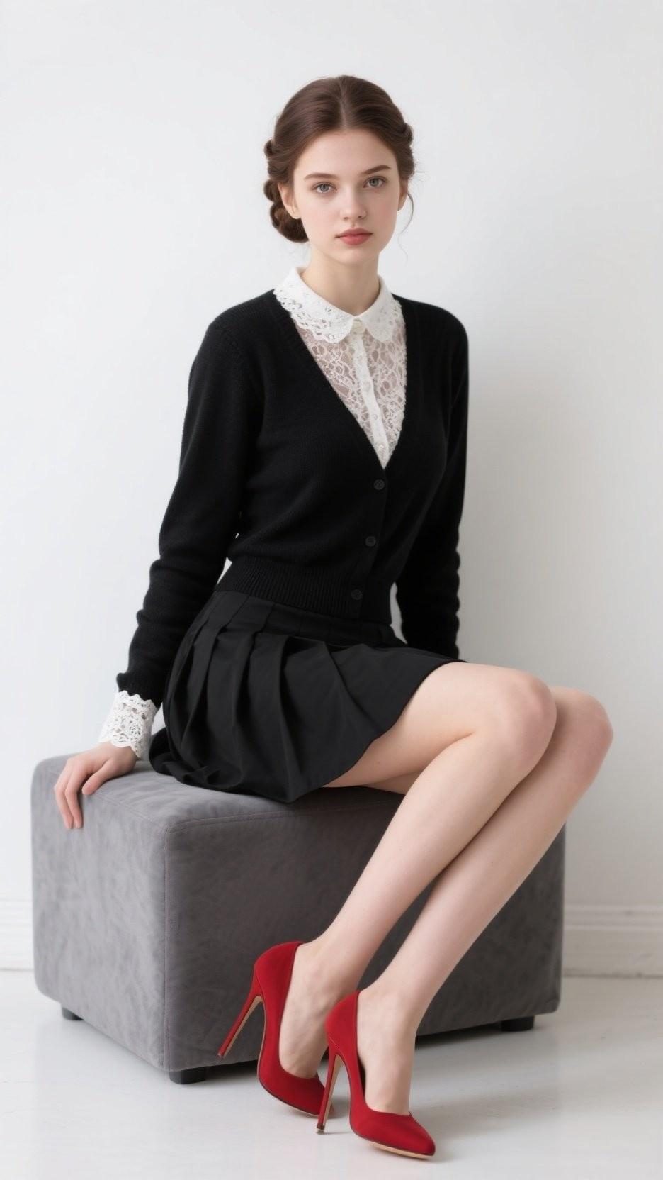 复古学院风穿搭,红黑配高跟鞋,优雅迷人!