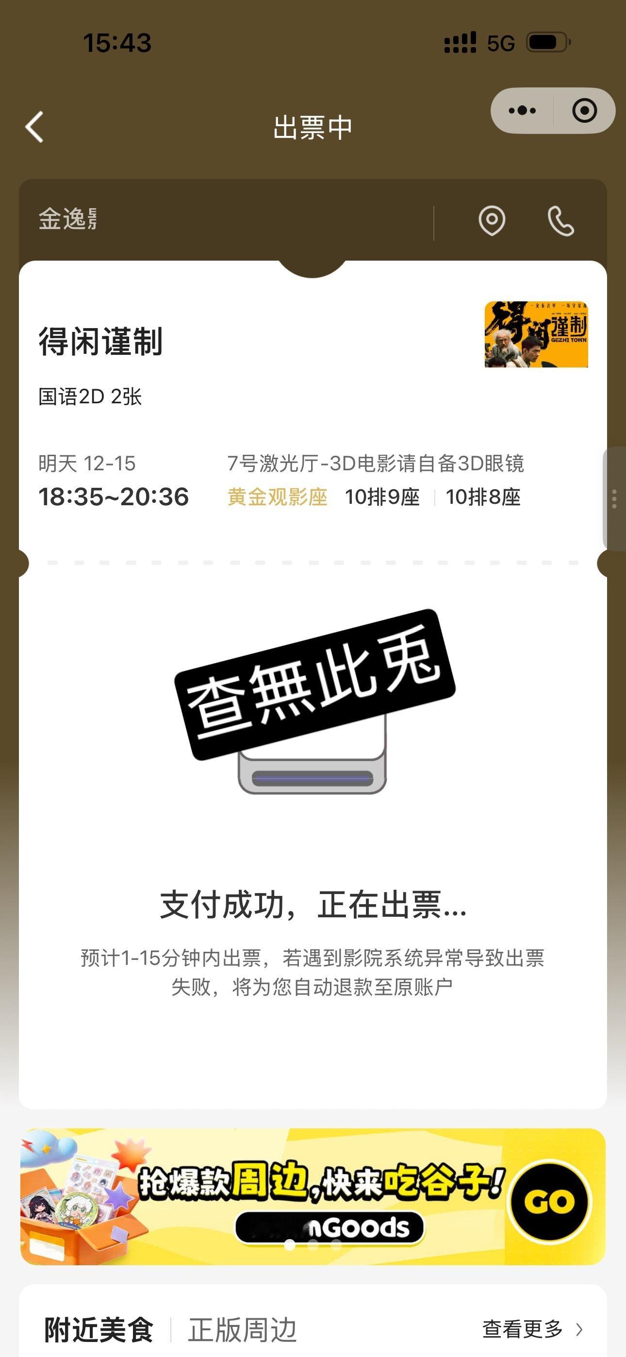 周六晚上的买好,继续电影院看得闲
