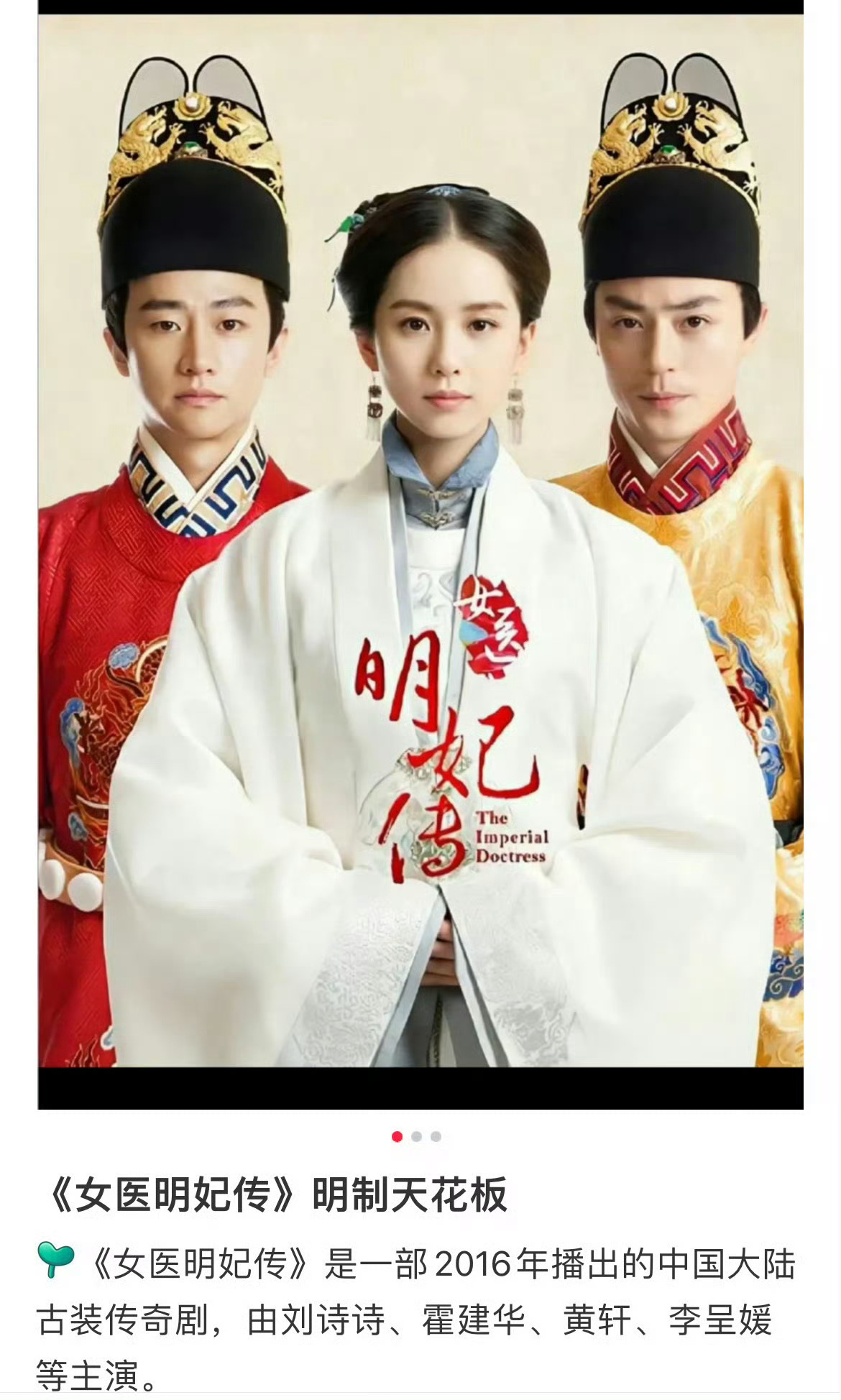 何晴最后一部作品是不是和刘诗诗的《女医明妃传》?
