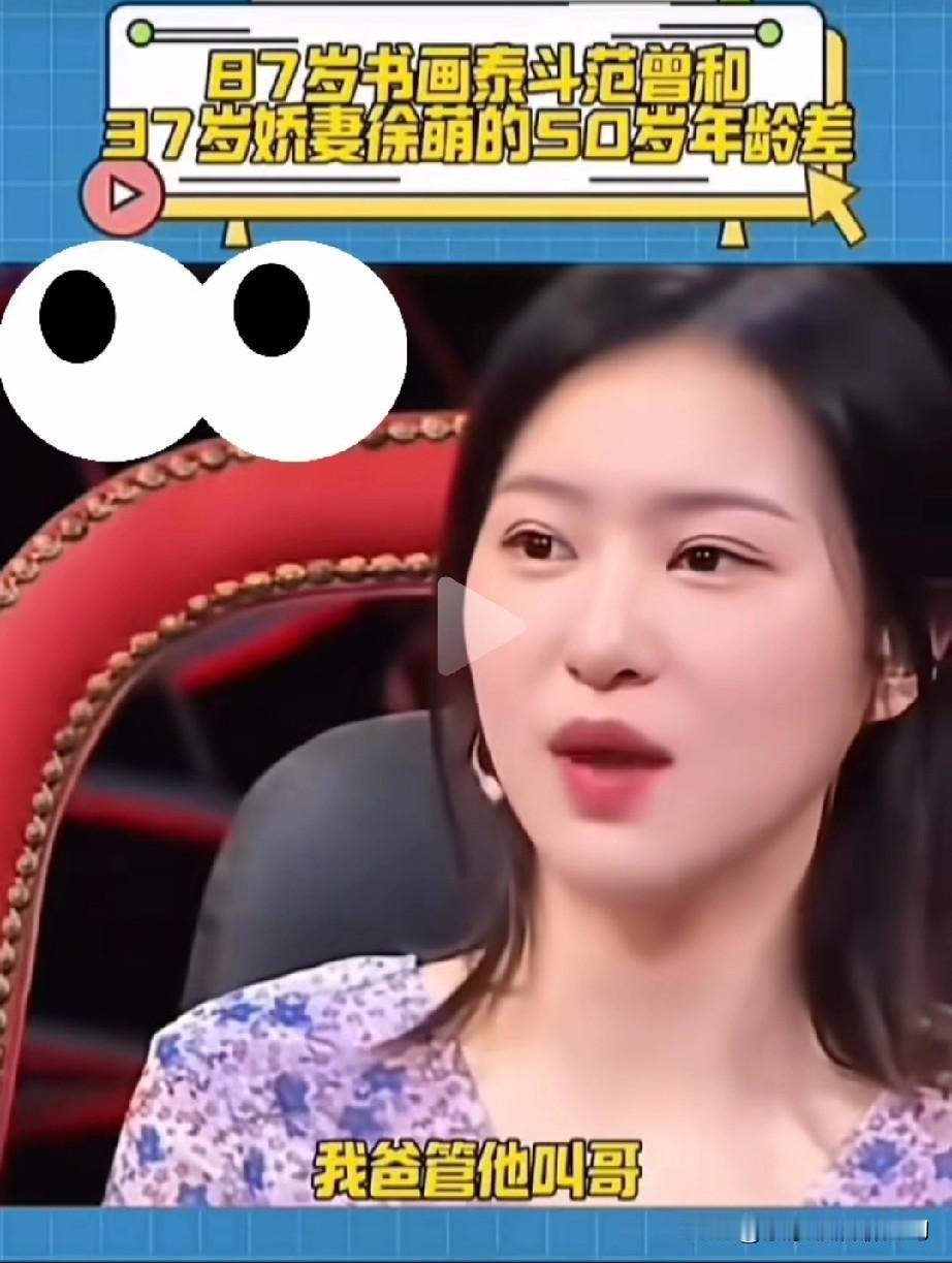 徐萌说了,范曾见了她爸叫爸,他爸叫范曾叫哥。 网友们不用替范曾老头发愁了,说他见了徐萌她爸咋称呼。 徐萌说了,范曾见了她爸叫爸,他爸叫范曾叫哥。哎呀!这都啥称呼啊!可是徐萌又说了:他们各论各的。 不能不说,徐萌她爸的心态那是真的强大,看到一个比自己大二十岁的老头叫自己爸爸他敢答应,而且转头又叫那老头“范哥”。 这才是真的“大棚乱了四季,金钱乱了辈分”。徐萌能大大方方地说出这些,可见她早已把心态练得好得不得了,敢大街上亲吻老头的脸,你说这心态谁能比? 啥也不用说了,人家自己幸福就好。