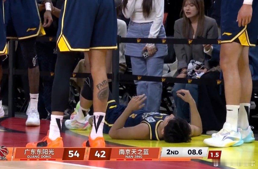 这劈叉投篮动作蛮危险的,直接勾倒了徐杰,裁判果断吹罚了进攻犯规,场边杜锋指导也非常生气,希望杰哥没有大碍啊 广东男篮vs同曦男篮