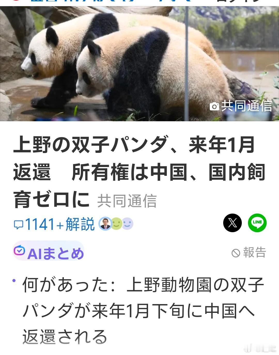 东京都关系者表示,日本上野动物园的两头熊猫将在明年1月下旬返还中国。虽然已经提出了续租协议,但是目前看来,因为高市早苗对于中国台湾问题的错误认识,东京都方面也承认,实现的希望渺茫。这样,日本将在53年后,第一次不再有来自中国的大熊猫