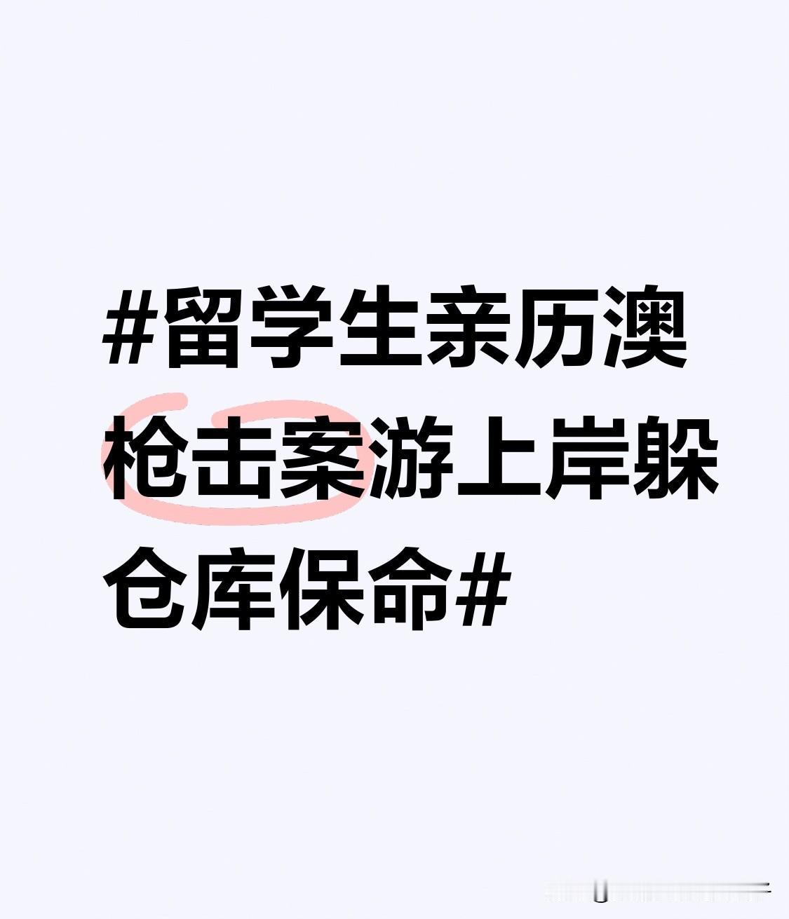 留学生亲历澳枪击案游上岸躲仓库保命 12月14日澳大利亚悉尼邦迪海滩发生的枪击案太可怕了。当时海滩正举办犹太人节庆活动,人多得很。中国留学生徐同学和朋友在海里游了近40分钟,突然枪声响起。那枪手几秒钟就开一枪,徐同学吓得心脏都快停了,游着游着没力气,还是靠澳大利亚安全员的冲浪板才上了岸。 上岸后海滩一片混乱,徐同学躲进堆满冲浪板的小仓库,等很久确认安全才离开。这次枪击已致16死42伤,澳大利亚全国下半旗志哀。澳大利亚虽有枪支管控,但各州法律有差异,这次枪手的6支枪都是获许可的。遇到这种危险,真得像徐同学一样冷静保命。