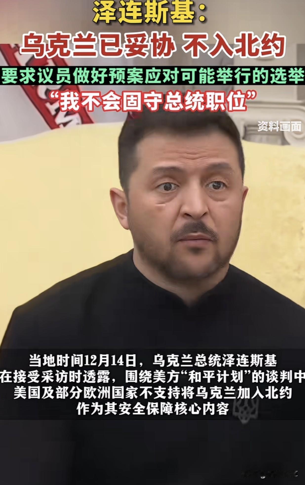 泽连斯基放弃了乌克兰的核心诉求,明确表示,不再寻求加入北约。打了三年多,乌克兰为的就是能加入北约。结果美国不要,北约也不要,事到如今,泽连斯基也算是认清楚了形势,终于在北约问题上松口了!此外,泽连斯基还表示,不会固守总统的职位。从上述信息,我看到了英雄迟暮。早知今日何必当初呢,泽连斯基虽然认清楚了现实,却因为一个不切实际的念头,让乌克兰遭遇了前所未有的厄运。不知道下一步,他是否会答应割地!