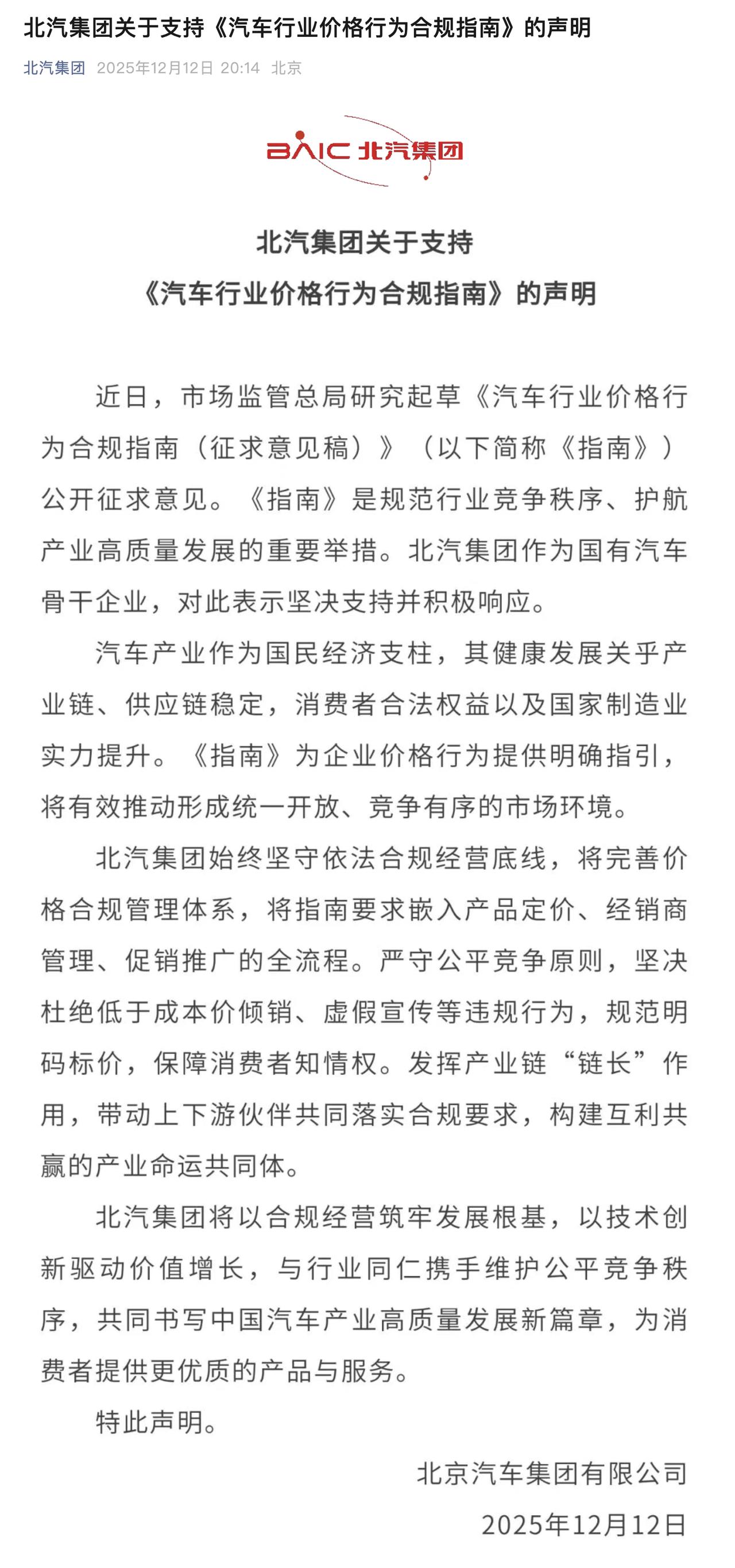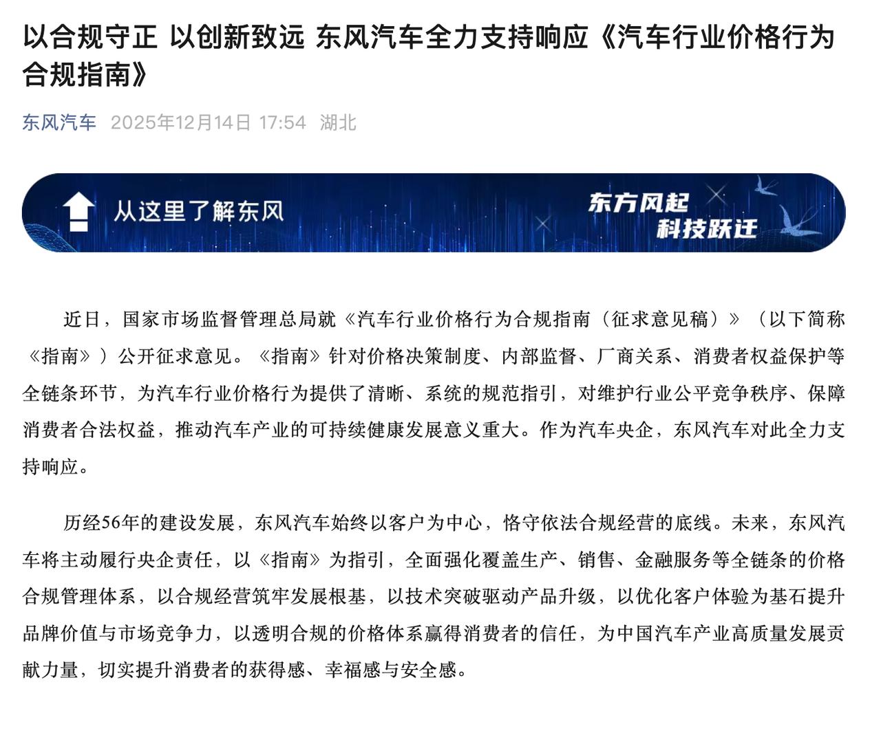零跑、小鹏、比亚迪、长安、奇瑞、北汽、长城、东风都已响应“反对价格战”倡议。