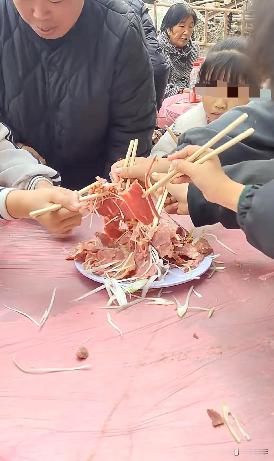湖北黄冈红安县一位农村老人去世,开席刚上的第一道菜,不到一分钟,菜就被抢着吃完了! 大姐就低头看了下手机,一抬头菜就没了,小女孩一口都没吃上,年龄太小根本抢不赢。 农村这种陋习该不该改?