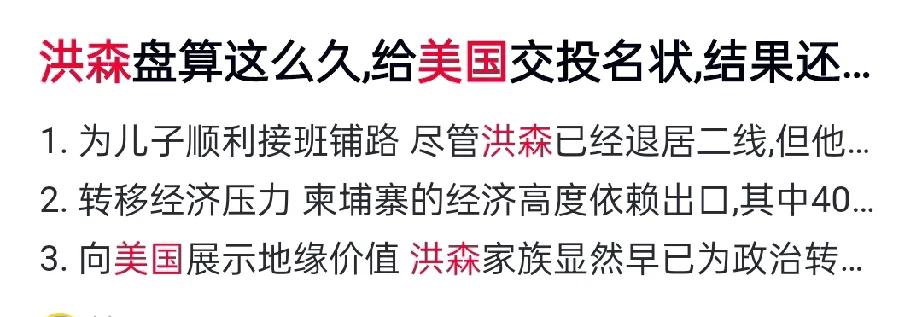选了美国当“靠山”,那洪森父子就一条道走到黑吧!咱们绝不掺和,就等着看这出“美式救援”的荒诞剧如何落幕。他们以为美国是救世主,能让泰国炮弹歇火?殊不知,中国大门只为真心朋友敞开,不是给“墙头草”留的后路。 冲突就是试金石,没了中国撑腰,“美式盟友”就是纸糊的。洪玛奈在西点军校怕是把脑子学“轴”了,以为挂个星条旗就能在东南亚耀武扬威。现实呢?泰国炮火一响,美国“面子”碎了一地。 洪氏父子放着身边真心实意的大哥不靠,偏去舔几万里外只会画大饼的美国,这不是自讨苦吃吗?如今急得跳脚求这求那,泰国炮火可没停。这就是“墙头草”的下场,两头落空。中国冷眼旁观,就是立规矩,到时候可别怪我们“无情”。且看这闹剧如何收场! 对此你怎么看?