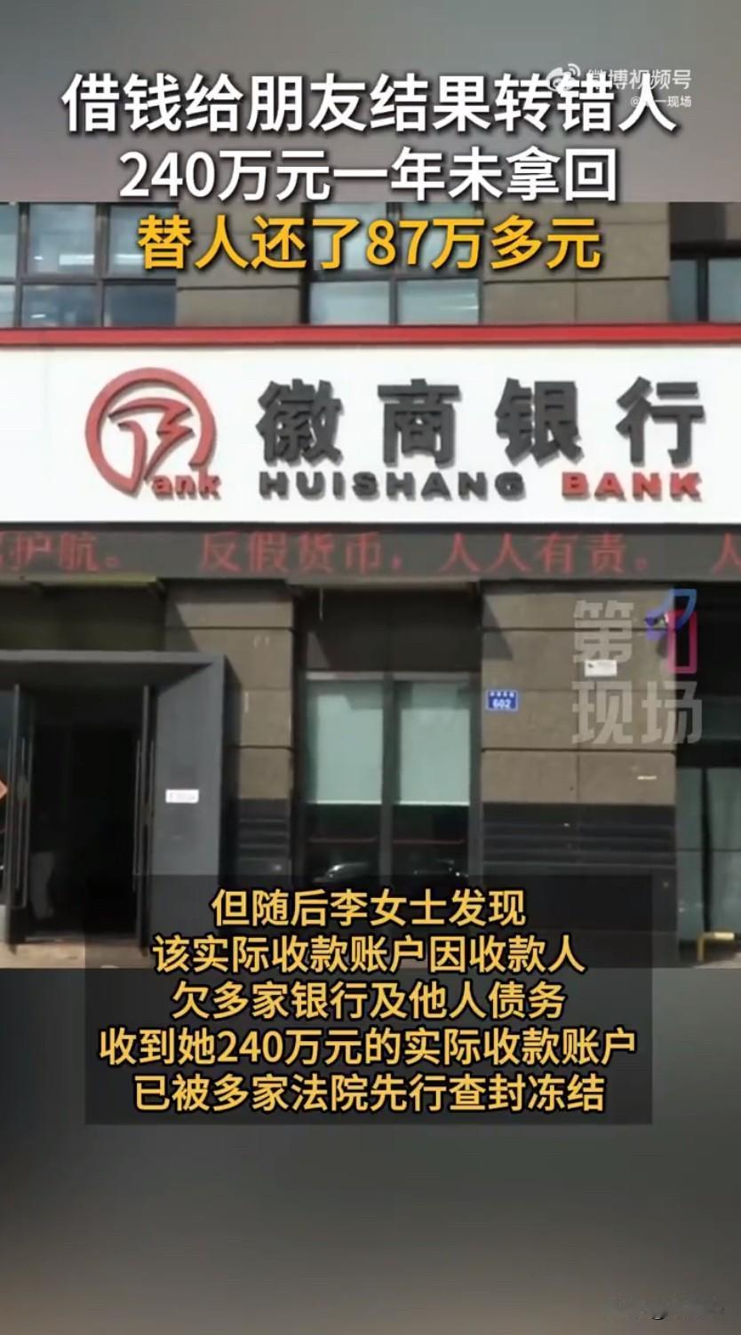 浙江宁波的李女士最近愁坏了,一笔240万的巨款转错人后,快一年了还没拿回来,其中87万多还被法院划走替别人还了债。事情得从她帮朋友还钱说起,当时李女士的朋友杜女士欠了别人305万,自己只有65万,就找李女士借了240万,约定好把钱转给两人都认识的一个朋友当中转,再由这个朋友统一把305万还给债主,这样做也是为了资金安全。可偏偏转账的时候,李女士正在打电话分了神,没仔细核对清楚收款人信息,就因为对方名字里都有个“莹”字,把这240万分三笔转到了另一个曾经认识、同名不同姓的人账户里。 等挂了电话核对记录,李女士才发现闯了大祸,赶紧联系银行和警方,又试着给收款的户主打电话,可对方一直联系不上,就像人间蒸发了一样。没办法,李女士只能走法律途径,把实际收款方告上了法院。好在法院很快有了判决,认定对方属于不当得利,得在规定时间内把240万全部还给李女士,本以为事情能顺利解决,没想到更麻烦的还在后面。 李女士这才了解到,那个收到钱的户主竟然是个欠了一屁股债的被执行人,光是欠一家银行的个人经营性贷款本金就有700万,账户早就被法院查封冻结了。更让她崩溃的是,自己转过去的240万里,有87万多已经被另一家法院划走,用来清偿对方之前的其他债务了,剩下的钱还在账户里冻着,拿不出来也退不回。 为了要回自己的钱,李女士向法院提出了执行异议,希望能停止对剩余款项的执行,解除冻结并返还给自己。可法院审查后驳回了她的异议,说对方账户早就被先行查封冻结,执行顺序在李女士之前,她的权利没法对抗之前的强制执行。现在李女士已经提起了执行异议之诉,案件还在等着开庭审理,这笔钱到底能不能要回来、能要回多少,都得等法院最终的裁判结果。 其实按照法律规定,转错账属于不当得利,收款人本来就该返还,可李女士遇上的情况太特殊,对方是负债累累的被执行人,账户还被多重查封,才导致钱难追回。这也给大家提了个醒,转账尤其是大额转账时,可千万别分心,一定要逐字核对收款人姓名、账号和开户行,确认无误后再提交,转账后也得及时和对方核对到账情况,避免出现类似的麻烦。要是真不小心转错了,得赶紧在24小时内联系银行尝试撤销转账,联系不上对方的话,要及时保留好转账记录等证据,通过法律途径维护自己的权益。 来源:第一现场