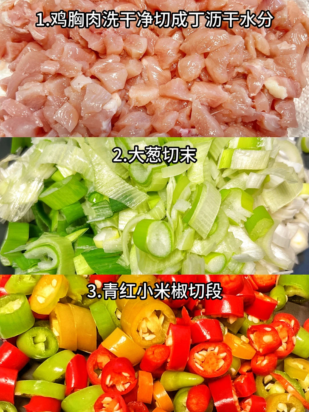 1、鸡胸肉洗干净切成丁沥干水分