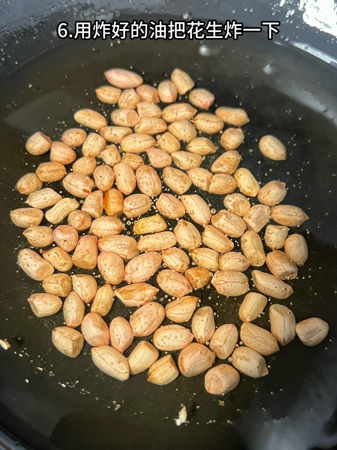 6、用炸好的油把花生炸一下