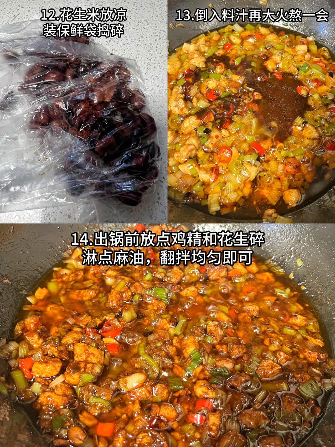 14、出锅前放点鸡精和花生碎,淋点麻油,翻拌均匀即可