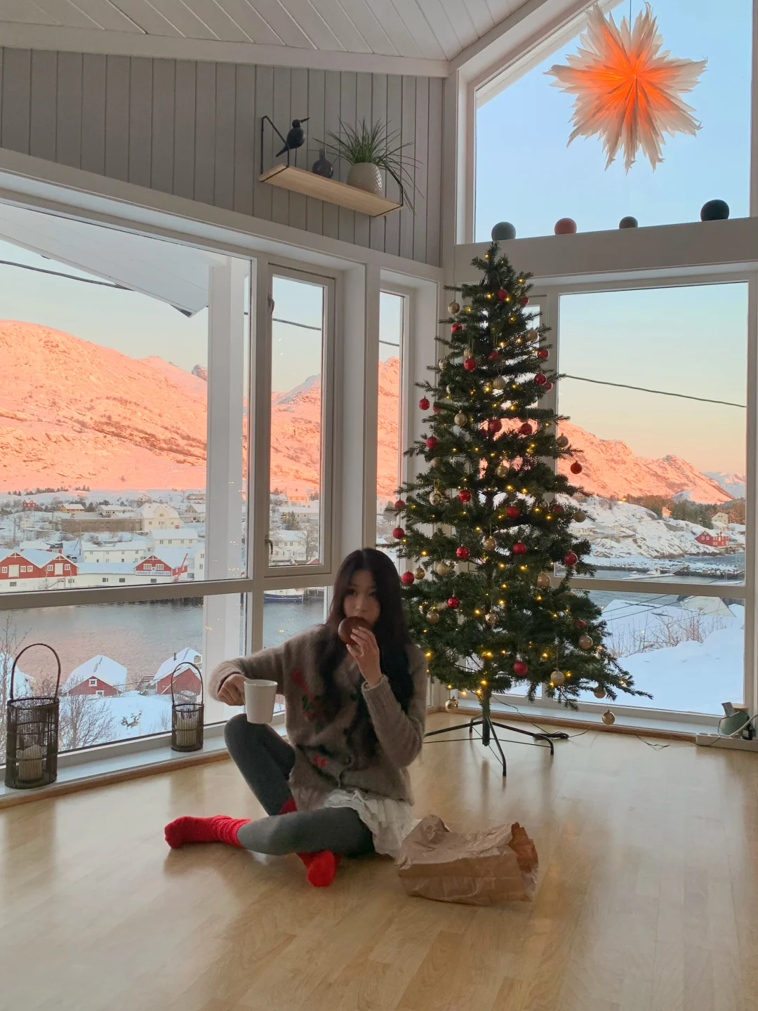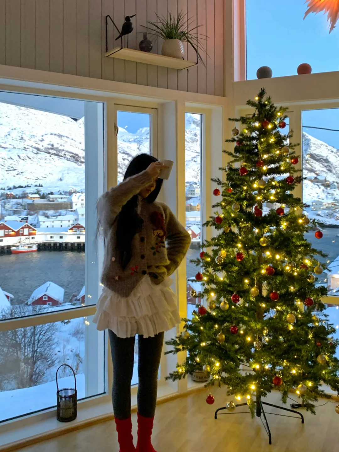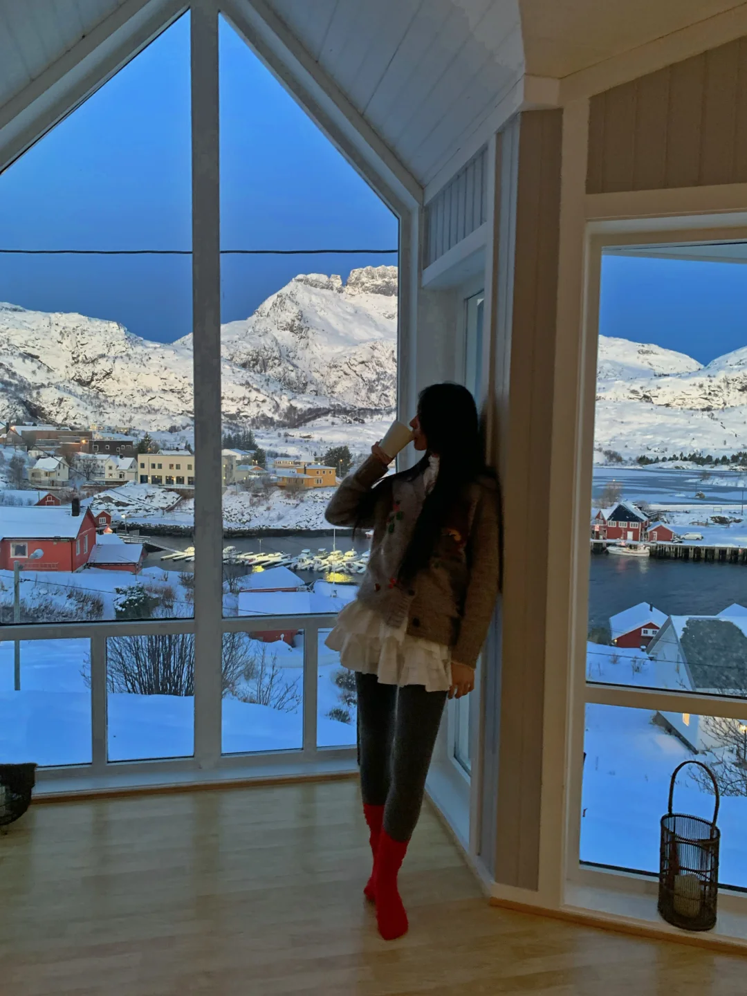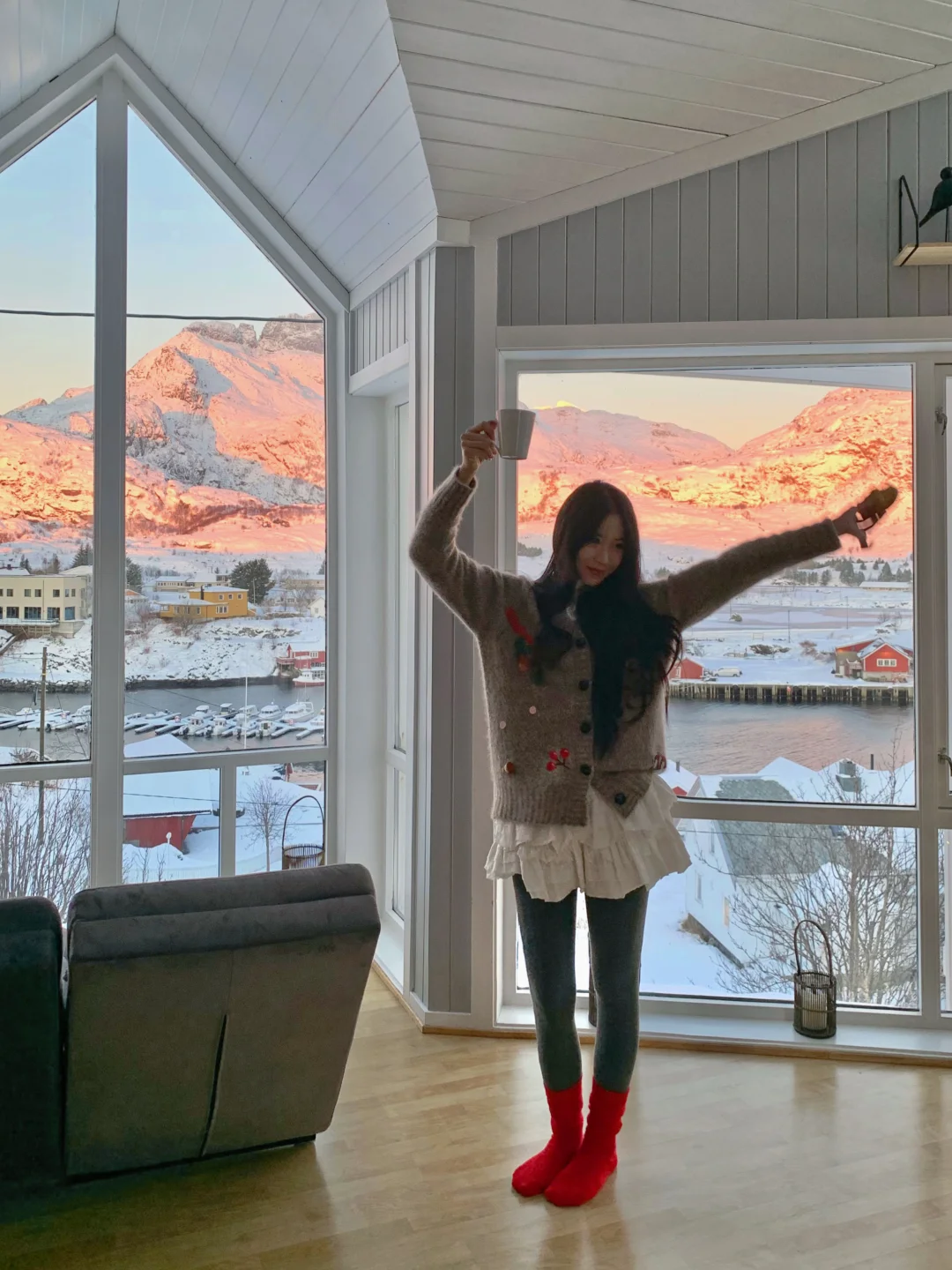 太幸福了吧!!! 在罗弗敦住进了很美丽的小屋 浓厚的圣诞氛围 对面是峡湾雪景 喝着热可可 对着窗外发呆…