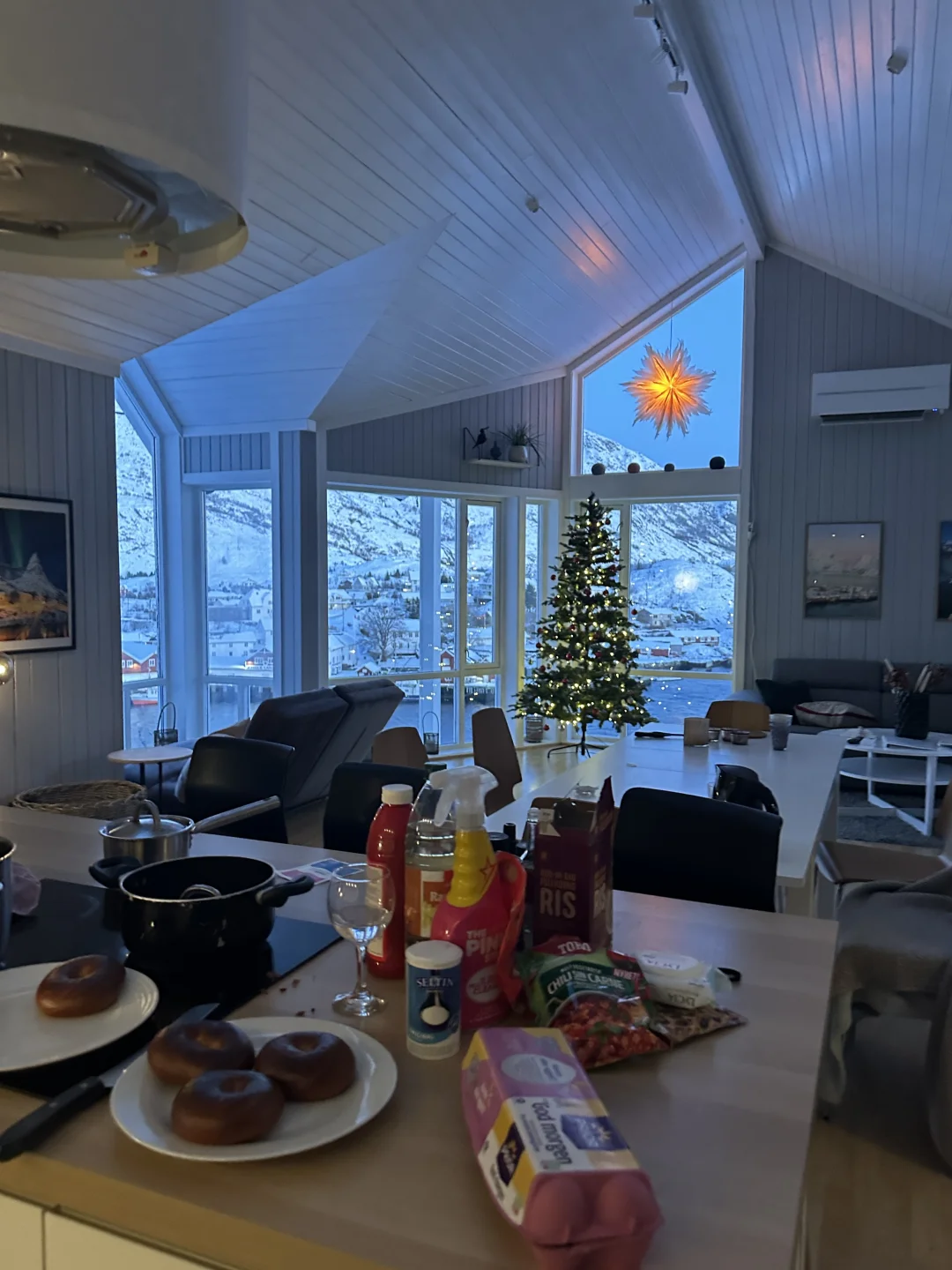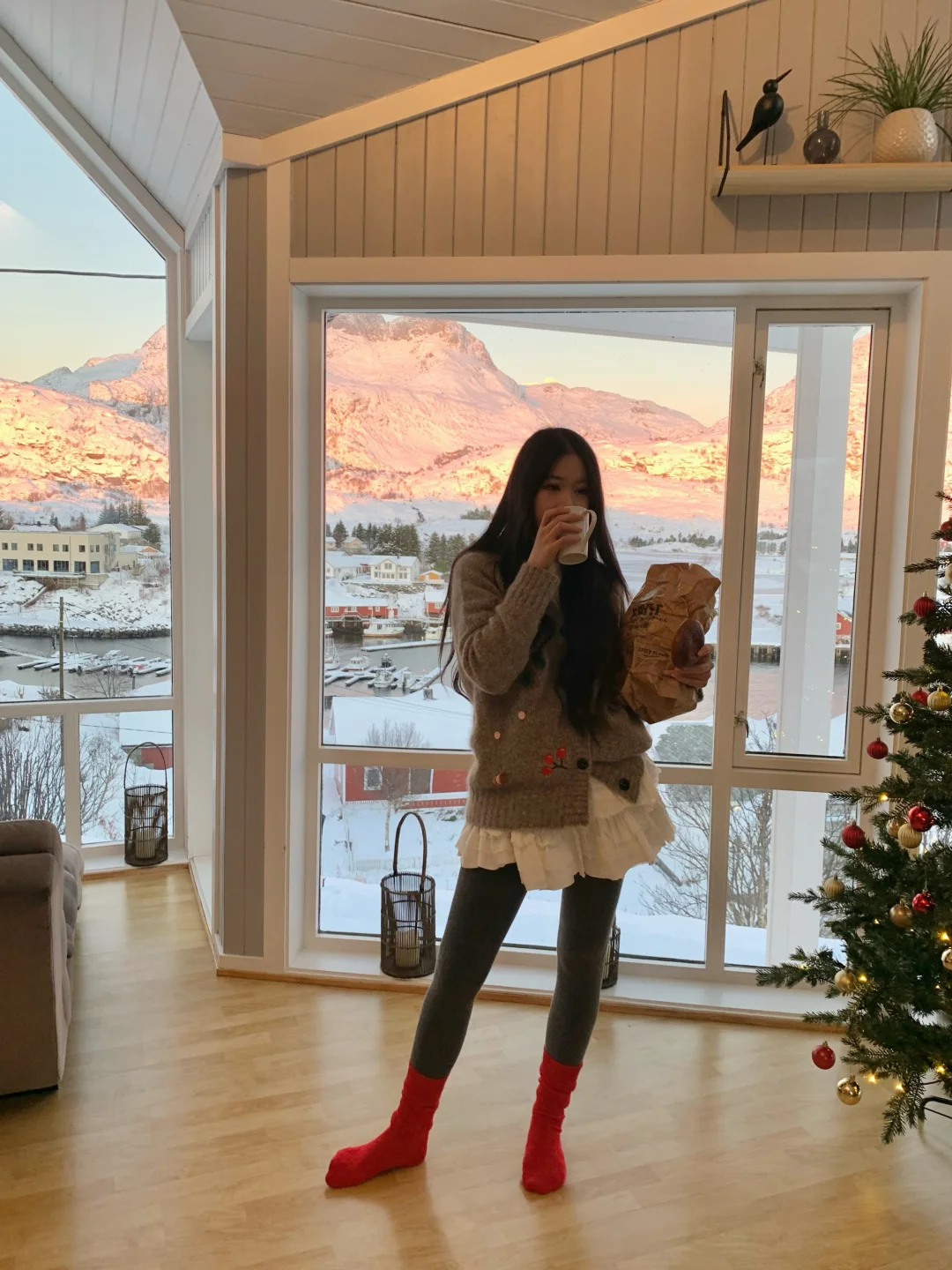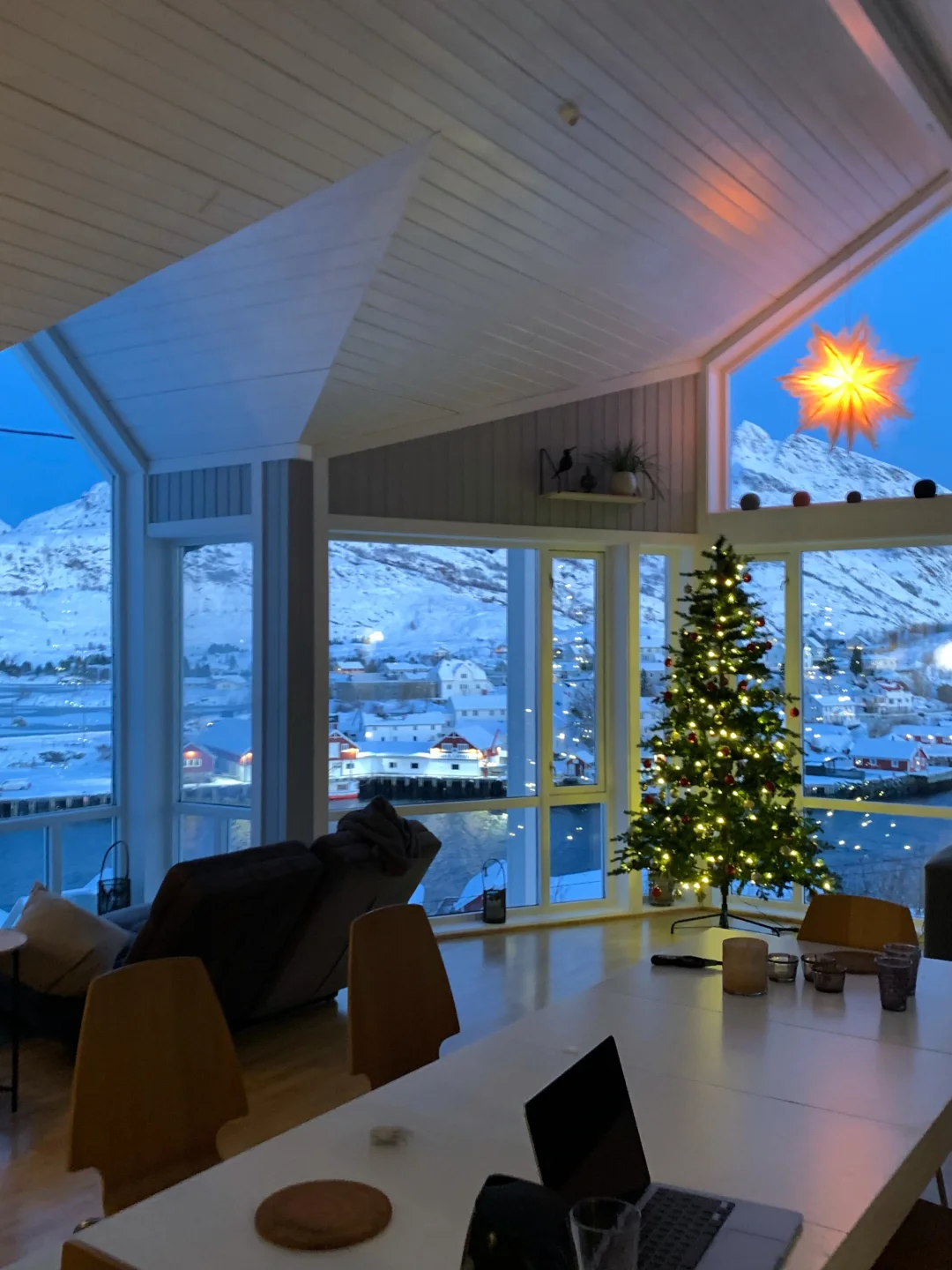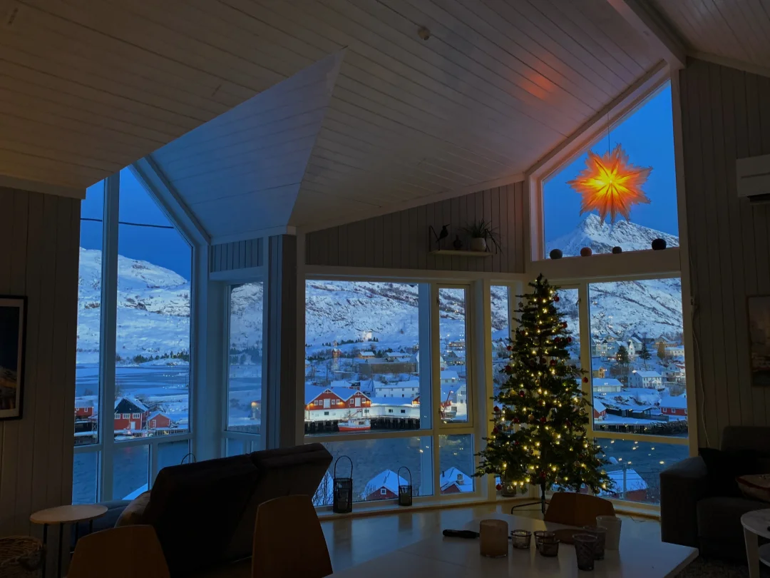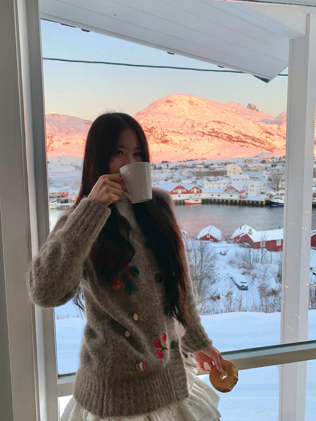 太幸福了吧!!! 在罗弗敦住进了很美丽的小屋 浓厚的圣诞氛围 对面是峡湾雪景 喝着热可可 对着窗外发呆…