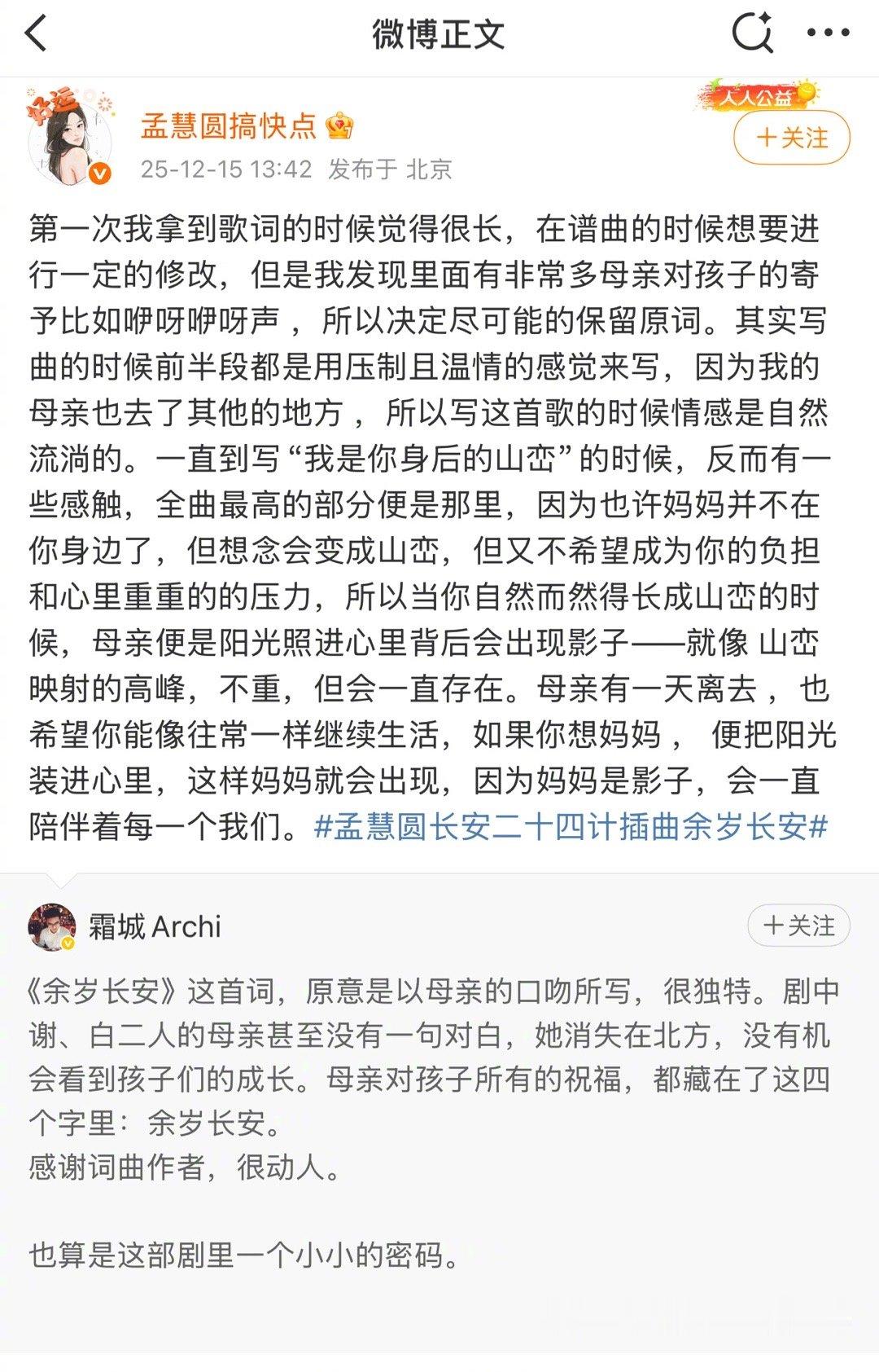 孟慧圆长安二十四计杀我别用亲情刀 谁被《长安二十四计》插曲戳中泪点!孟慧圆的演唱把母亲的牵挂唱得具象又戳心,搭配《余岁长安》里谢淮安的身世,亲情刀直接扎破防,尤其是“余岁长安”藏着的缺席与祝福,听完直接破防~