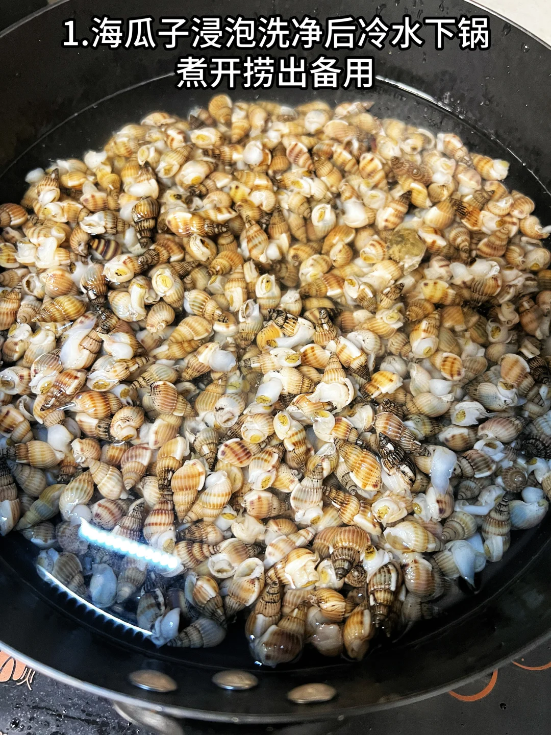 1、海瓜子浸泡洗净后冷水下锅,煮开捞出备用