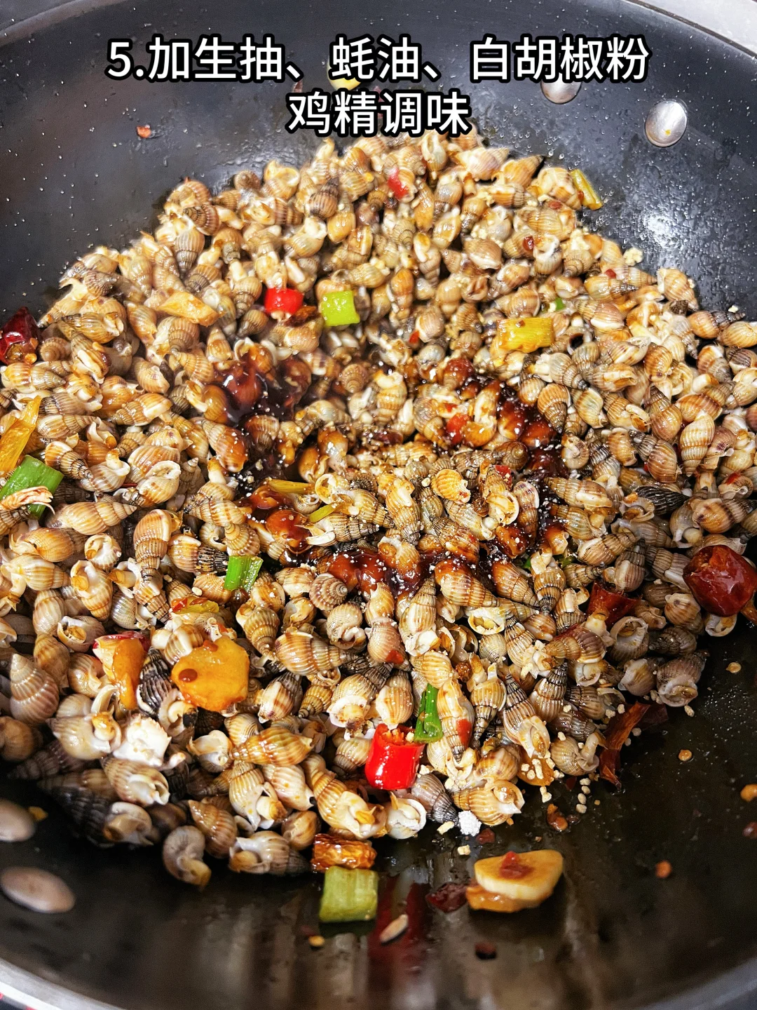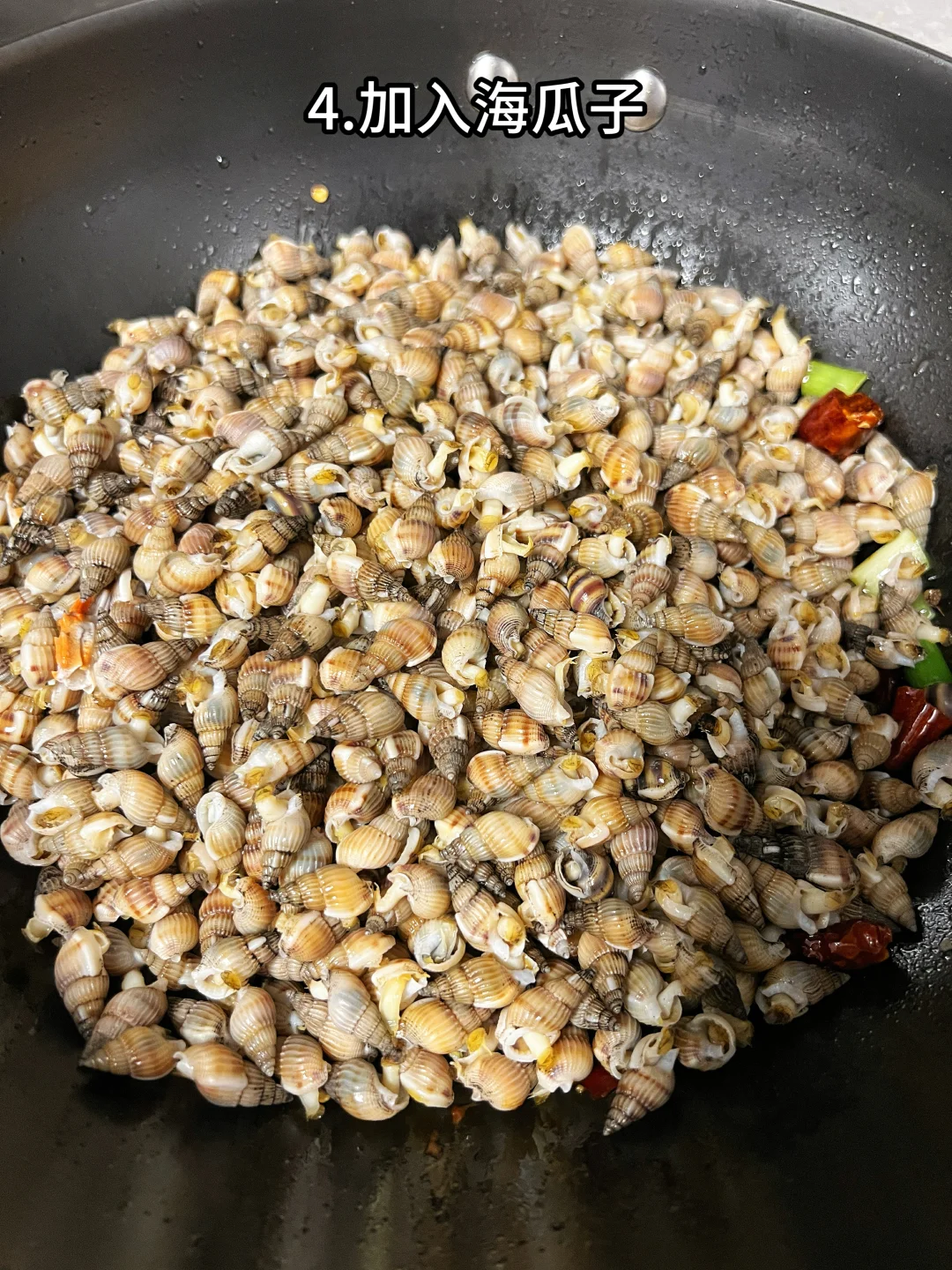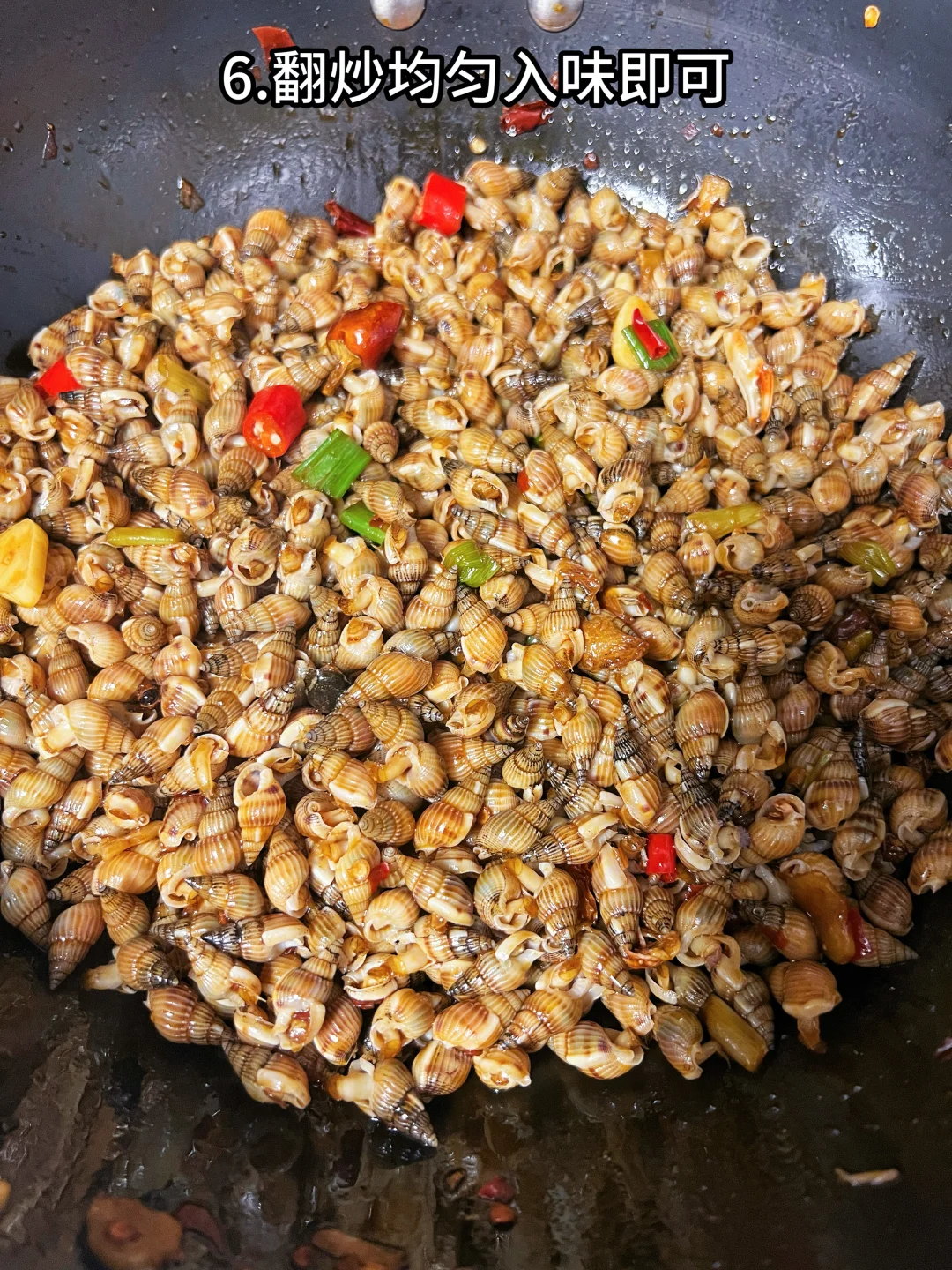 炒的时候别加水!海瓜子煮过带水分,调料也会出汁,加水会稀释鲜味,酱汁就不浓了。