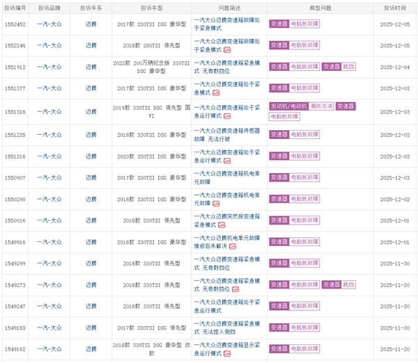 一汽大众迈腾遭车主集体投诉:变速箱进入紧急模式,奇数挡挂不上,我反正觉着只能说大众销量多而已