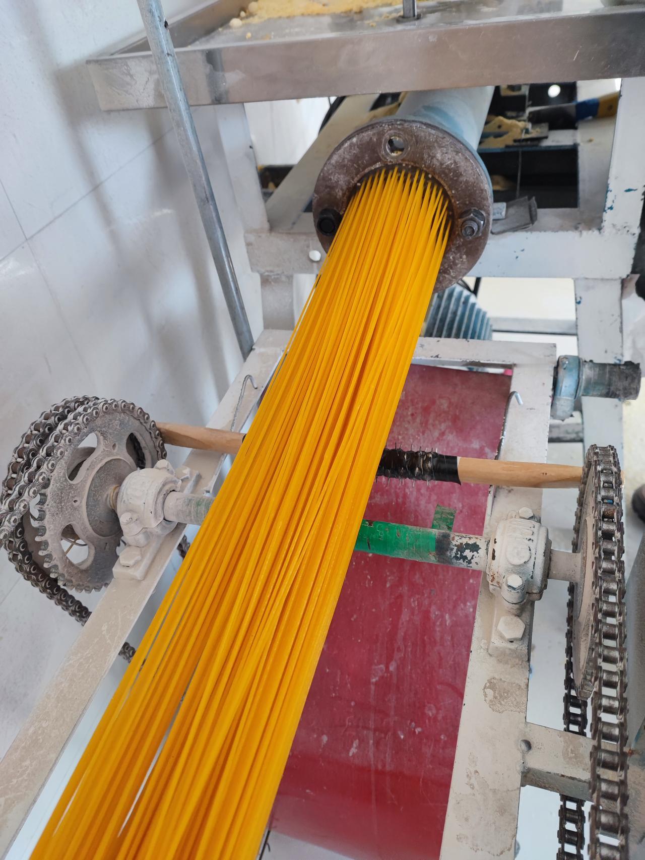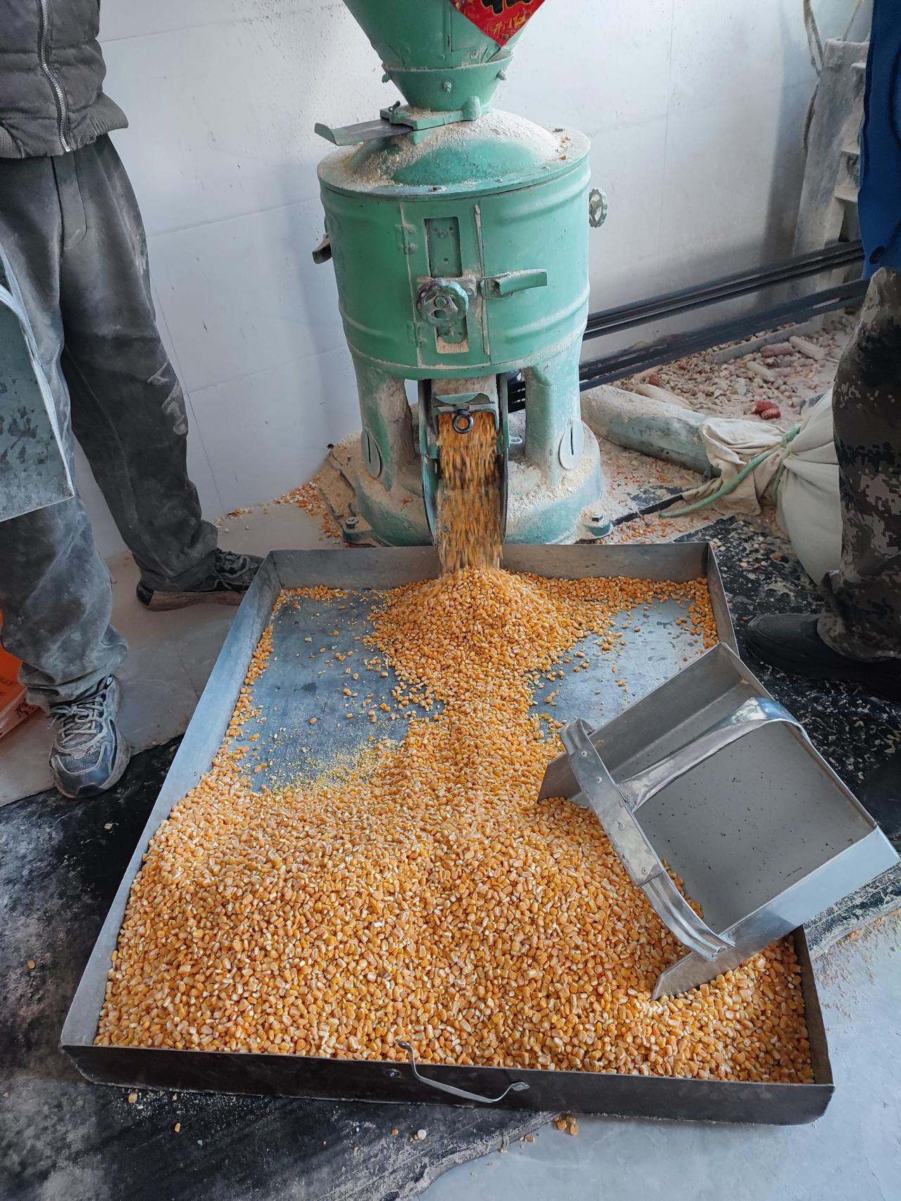 几十年的情怀 儿时的美食, 不知道还是不是当年的味道! 儿时每当去生产队的加工厂加工面条, 我们一群孩子, 虎视眈眈的聚拢在机器旁, 闻着新鲜苞米面的味道, 望着金黄金黄还热乎乎的玉米面条直淌口水, 大人们都会顺手拽下一骨碌, 趁着热乎, 用手使劲的把面条攥到一起, 攥成年糕的样子, 虽然不像年糕一样黏, 却特别筋道, 我们每人手里一块, 顶着寒风嬉闹着、 津津有味的咀嚼着。 几十年再现, 突感亲切又恍惚, 像昨天又像很久!