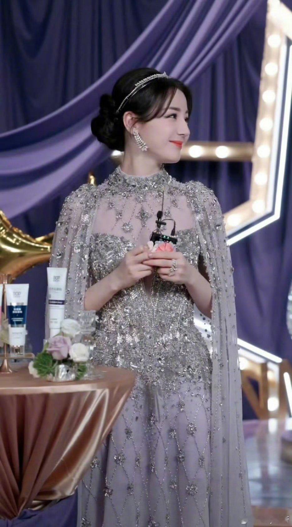 迪丽热巴今晚造型太美了吧也!!紫色亮片刺绣披纱简直鲨疯迪丽热巴