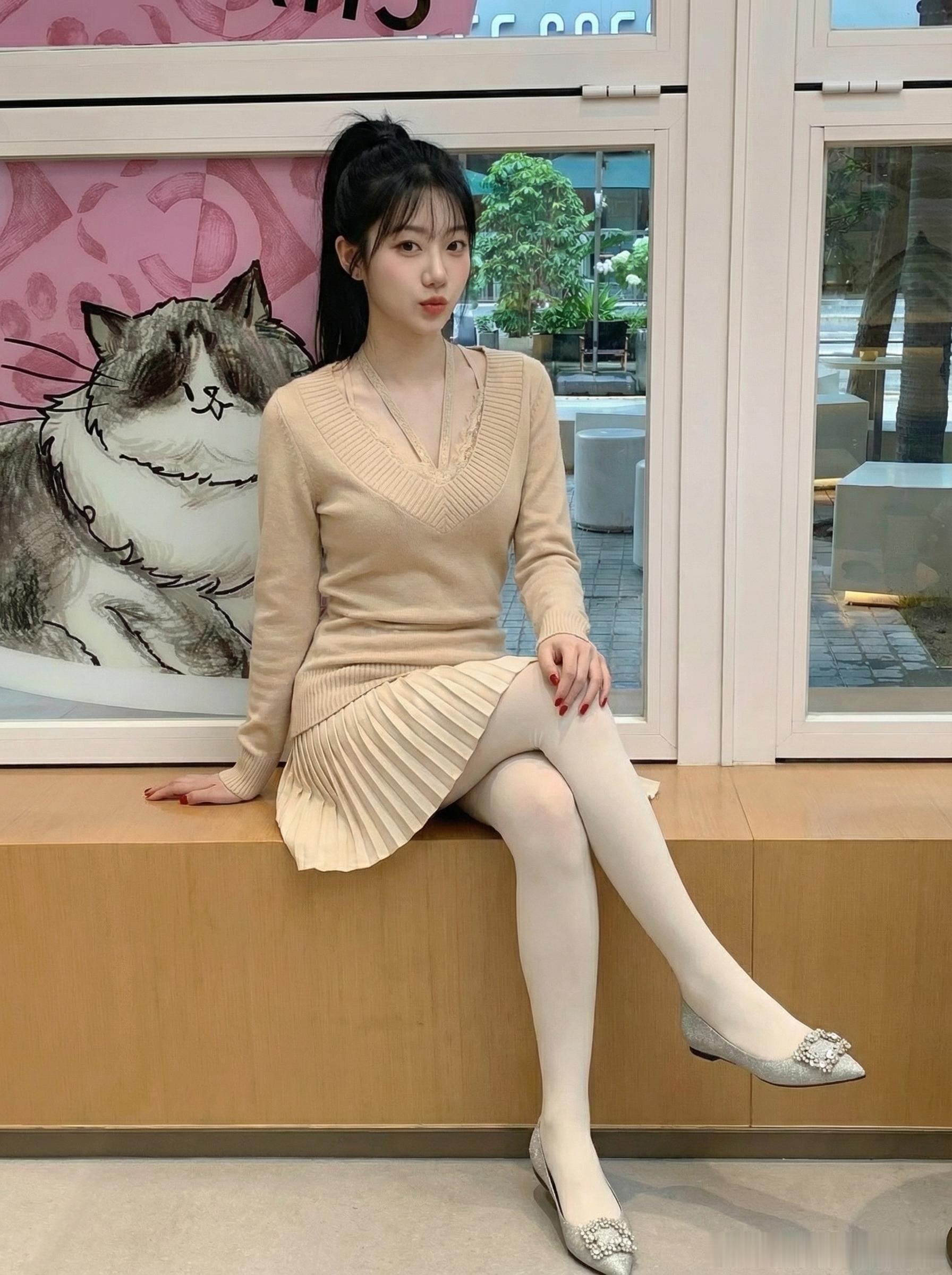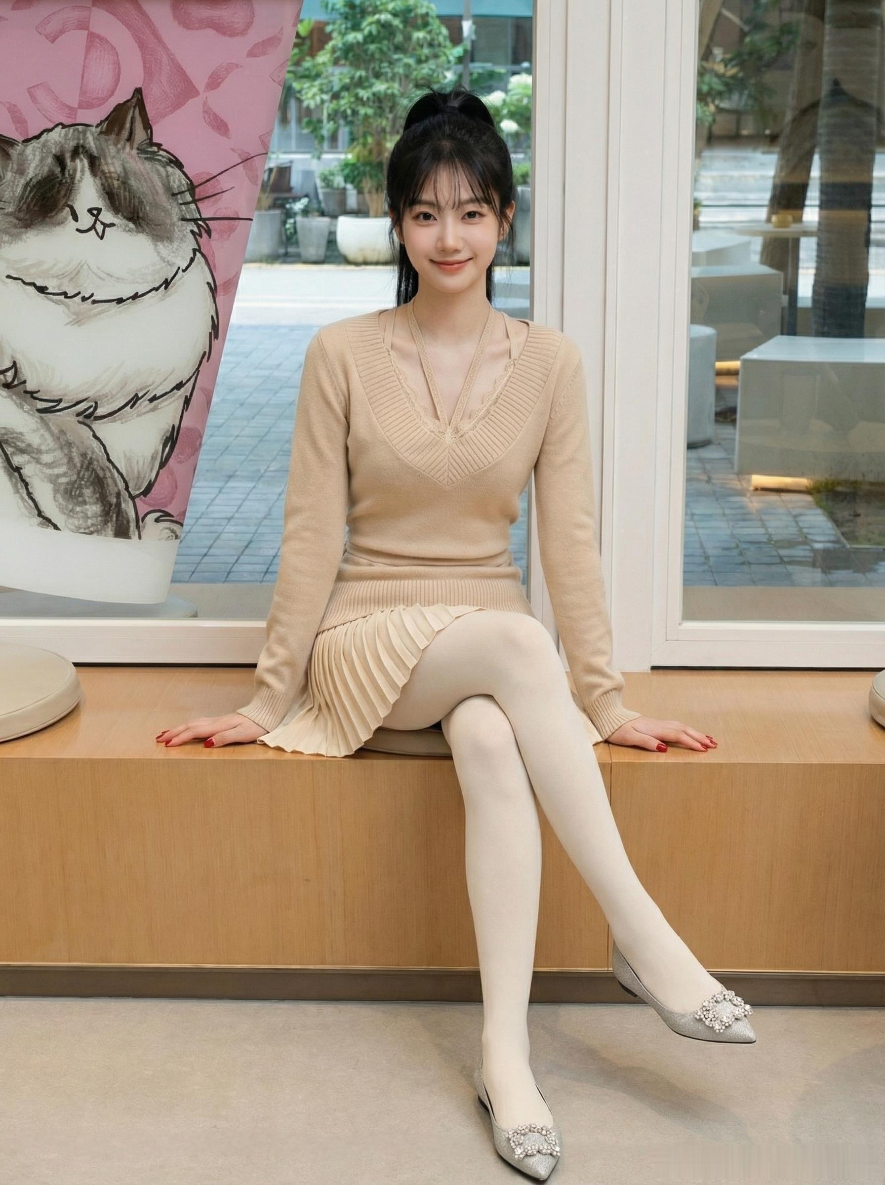 优雅气质穿搭,米色上衣+黑色百褶裙,清新自然,轻松展现女性魅力!🌸💃🏻