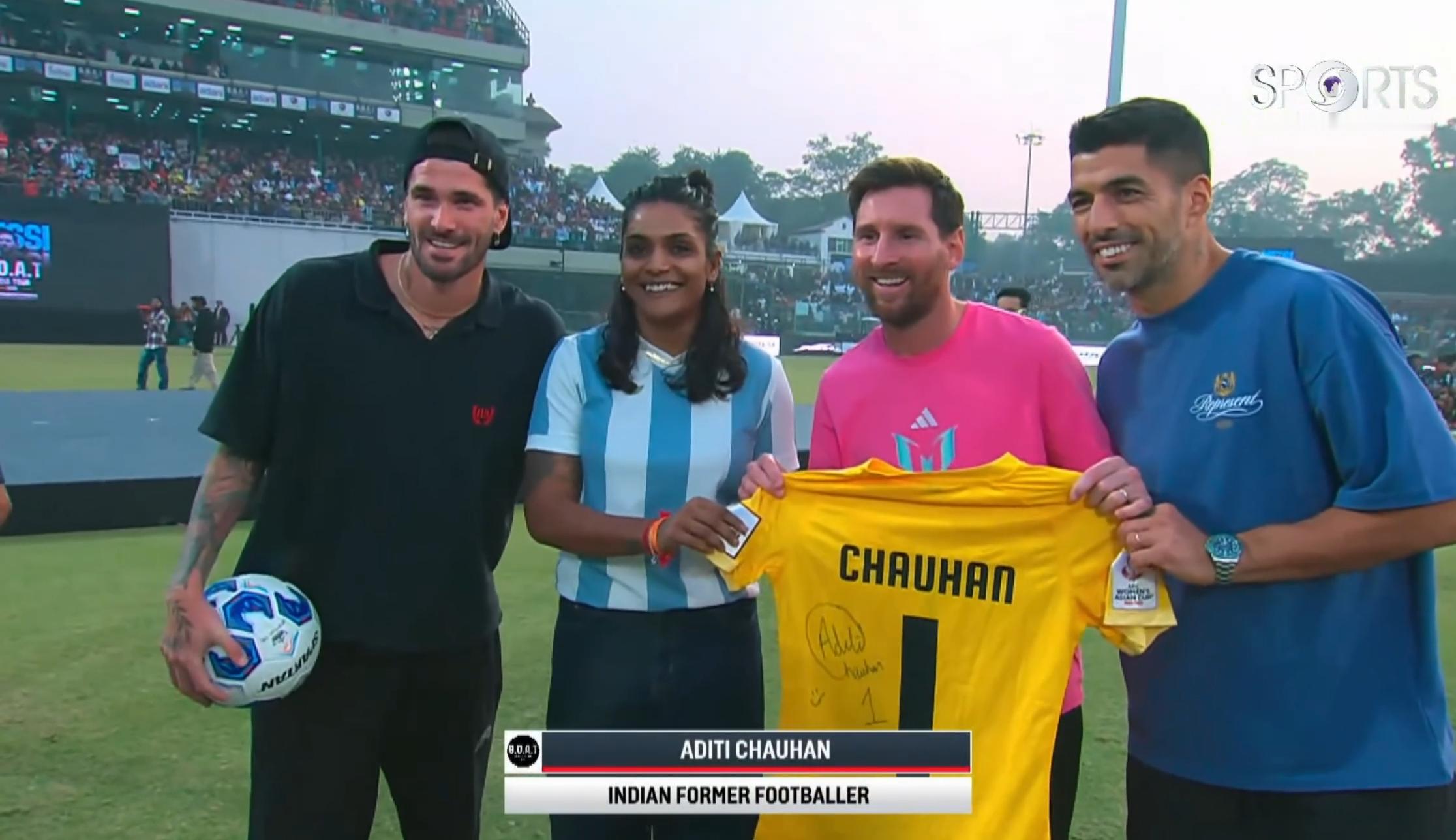 前印度女足门将阿迪蒂·乔汉接受采访:"我现在还在回味,这远超我的梦想和想象。直到昨天我都不知道会发生这样的事情。他就像神明一般,是我成长过程中仰望的存在,我正是因为他才开始踢球的。我从未想过能亲眼见到这位足球之神、历史最佳,甚至触碰到他,这真的真的太特别了...他们每个人都如此谦逊有礼。能获得这个机会,我无比感恩..."梅西印度行梅西