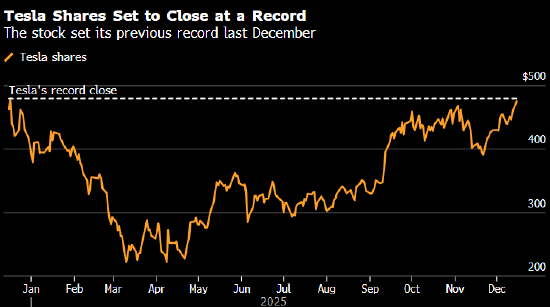 当前交易员正买账马斯克的叙事,并对特斯拉的人工智能布局日益看好。11月,特斯拉投资者通过批准对这位首席执行官万亿美元薪酬方案,彰显了对马斯克愿景的信任,并希望他继续掌舵。