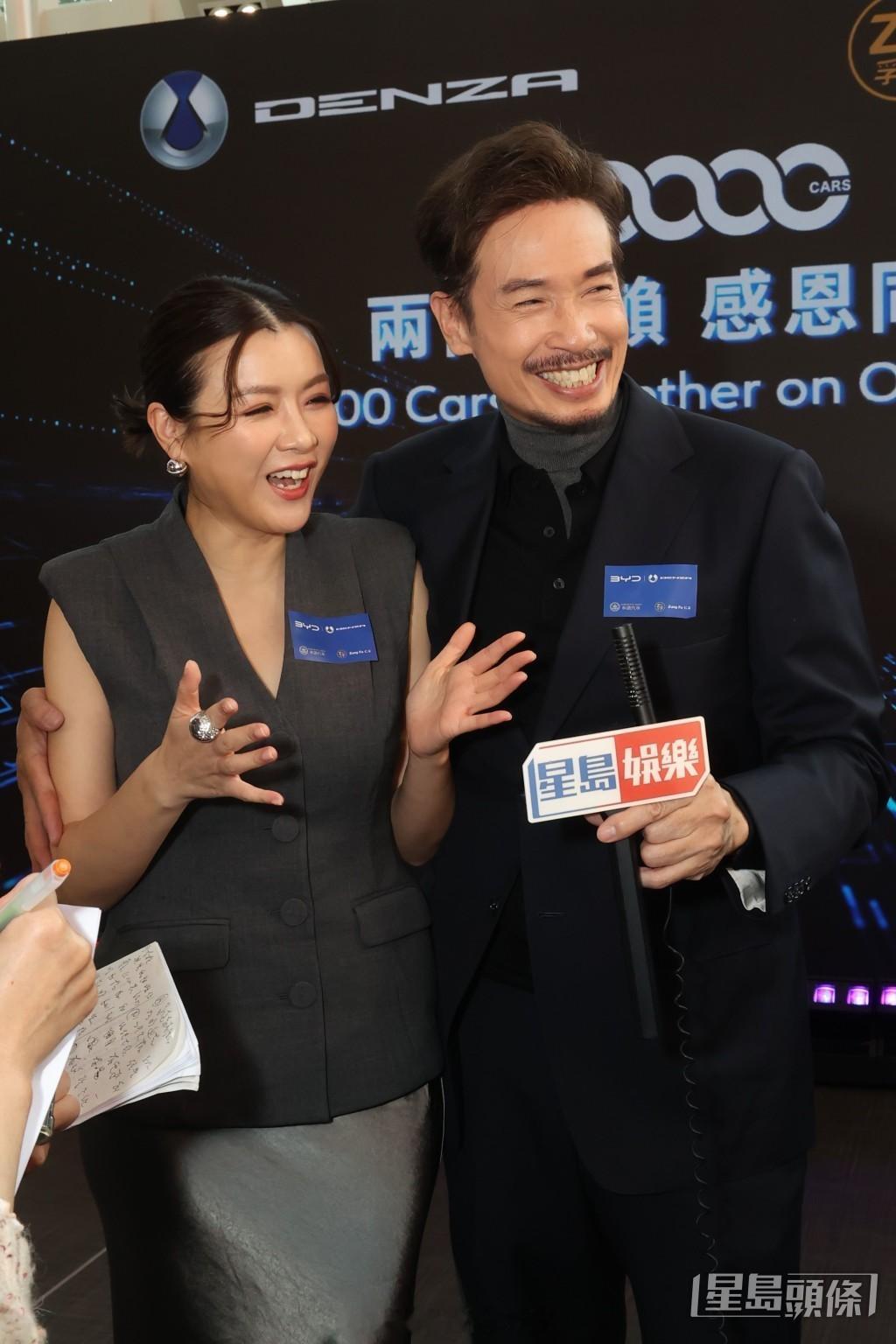 星岛:陈豪入围视帝十强放声气:给奖即唱歌 揽实陈茵媺挡肚甜蜜否认有喜陈豪与太太陈茵媺今日以夫妻档身份出席电动车品牌活动,更荣升该品牌第20,000位车主。陈豪笑言选车标准是低调而不失格调,兼具个人风格,更甜蜜比喻“就像我太太一样”。陈茵媺则分享平日经常驾车接送子女,直言驾车好爽、好享受,获丈夫大赞是“多功能太太”。陈豪搞笑自称只是“驾车工具”,透露太太对驾驶的热爱比他更甚。提及陈豪在《万千星辉贺台庆》中未展歌喉,被问到是否曾听过老公唱情歌?陈茵媺笑说:“甜言蜜语就有。”陈豪则表示会唱深情歌曲,但太太坦言从未听过他主唱的剧集《心花放》主题曲《心花无限》,打算回家上网搜来欣赏,不过对丈夫各方面都充满信心。陈豪亦透露女儿热爱唱歌,身为“歌手爸爸”的他,会从旁指导子女音准。陈茵媺对老公各方面有信心陈豪凭剧集《侠医》在“万千星辉颁奖典礼2025”中跻身“最佳男主角”十强,他谦称所有对手都很强。若再夺视帝会否献唱《心花无限》?他幽默回应:“给个奖我,即刻唱给你们听!但唱剧集《心花放》主题曲《心花无限》就不好搞我啦,到时大家可以点歌。”陈茵媺表示未听过老公《心花无限》,稍后回家上网欣赏,她对老公各方面有信心。陈豪则笑谓女儿喜欢唱歌,他也会指导子女要音准。身形显得圆润的陈茵媺被问到是否“有喜”?她笑住否认再怀孕说:“我一直都好幸福!”陈豪随即体贴地揽实太太,巧妙为她遮挡手臂。此外,陈豪亦有客串正在播出的内地剧《时差一万公里》。他表示不时参与内地工作,更获综艺节目邀请献唱。被笑指在内地演出相当低调,他笑说:“不知道就好啦!”