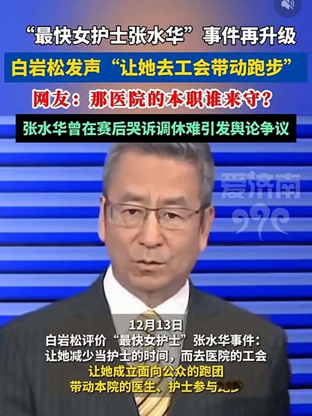 还好白岩松没有喊张水华带动外卖员和农民工跑步[捂脸]。 白岩松因为说要最快女护士去工会带医院的医生护士去跑步,被网友吐槽。 其实大部分三甲医院的医生护士,下班后累的不想动了,就是瘫在床上玩手机。 他的出发点是好的,只是可能脱离基层太久,不知道真实情况。 真实情况就是,下了班,大家即使想运动,也不想和同事儿运动,更不希望下班了还有什么倡议活动。只想下班了有自己的时间,爱干嘛就干嘛!