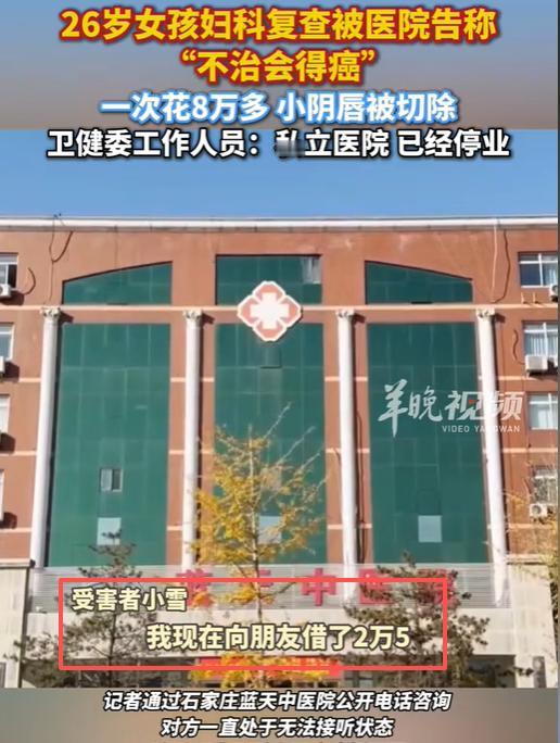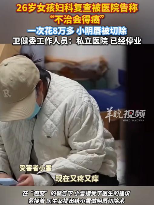 “必须严惩!”河北一26岁女孩去做妇科复检,结果医生告诉她,要做手术,否则会得癌,于是她花了8万多元,将小阴唇切除,可手术之后,她的病非但不好,还又痛又痒的。更可怕的是,她发现多名女患者都有相同经历,目前医院已停业。网友:这哪里是看病,分明是设好的陷阱!   “不做手术,你这病迟早得癌。”听到这句话的小雪瞬间愣在原地,手术费清单长得超出想象,她怎么也没想到,自己只是去做个妇科复检,居然会遇到这种事情,但更出乎她意料的是,这一切都仅仅只是事件的开始。   那是2025年秋天,私立医院里,只见医生指着显示屏上小雪的妇科复检,语气像聊天气一样平常,内容却让她后背发凉。   “看见没?这边缘,这形态,发展下去就是癌症。还有你这小阴唇形状,也影响健康,得一起处理。” 见她脸色发白,医生的语气又缓下来,紧接着补充:“今天就能安排,微创的,做完就好。”   见此为了自己身体健康,慌乱中,小雪在没来得及给家人打个电话的情况下,抖着手签了字。   躺在手术台上时,耳边还能隐约听到护士在门口低声催促缴费:“那个药用不用?防粘连的,效果好,就是贵点。” 她迷迷糊糊地应了声“用”。一场手术下来,刷光了积蓄,还背上了网络平台的借款,总计八万多。   术后的日子,成了痛苦的延续。伤口又痛又痒,像有无数小针在反复刺扎,坐立难安。复查时,她忍着不适问医生,对方只是轻描淡写:“个体差异,恢复期正常反应,再开点药吧。”   看着眼前又一次递了过来的药费单子,她开始觉得不对劲。一次偶然在医院走廊等待时,她听到旁边两位女士低声交谈,内容让她脊背发凉。“你也是被吓唬说会癌变才做的手术?”“是啊,还说我不做以后怀不了孩子……”   小雪猛地抬头,对上同样焦虑的眼睛。于是,几个同样惶惑的年轻女,她们偷偷建了个群,短短几天,竟汇集了七八个有类似经历的姑娘。故事的开头惊人地相似:一次普通的复查,被“癌变”“不孕”的判决钉在诊室里,然后稀里糊涂地躺上手术台,背上一身债。   最终一切的恐惧被愤怒取代,小雪不再沉默,她拿着所有病历,走进了河北省人民医院。接诊的老医生仔细看完,眉头紧锁:“姑娘,你这情况……常规观察就可以,远不到要手术切除的地步,更别提癌变了。”   老医生的话虽轻,却砸得她耳鸣。再回去,她声音很平,手却在桌下攥紧了:“你当时告诉我,不切一定会癌变。现在省医院的专家说,根本没必要做。哪个才是真的?”对方脸上的职业笑容僵了一下,移开目光:“诊疗方案有主观判断,我们也是出于更安全的考虑……”   后来,事情闹开了。在记者暗访调查,更多细节暴露在阳光下:话术培训、术中加价、过度医疗的完整链条。舆论压力下,涉事医院悄然停业。   经过艰难协商,小雪拿回了自己的八万多元赔偿,其他一些受害者也得到了部分退款。拿到钱的那天,她没有感到喜悦,只有无尽的疲惫和一种虚幻感。走廊里曾经让她心惊胆战的宣传海报已被撕去,留下一块块难看的胶印。   只能说,健康不应成为恐惧贩卖的商品。当白大褂罩上盈利的欲望,诊断书就成了精心设计的剧本。这出戏里,没有赢家,因为患者承受了身心的双重创伤,而丧失信任的医疗环境,最终让所有人寸步难行。真正的负责,始于真实的告知,而非制造的恐慌。 对此您怎么看?欢迎大家到下方评论区留言共同讨论。 信息来源: 羊城晚报|《26岁女孩妇科复查被医院告称“不治会得癌”。一次花8万多,小阴唇被切除。卫健委工作人员:“私立医院,已经停业。”》 文|沐琨 编辑|南风意史