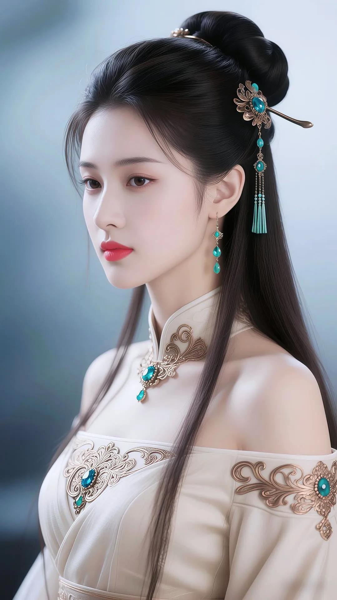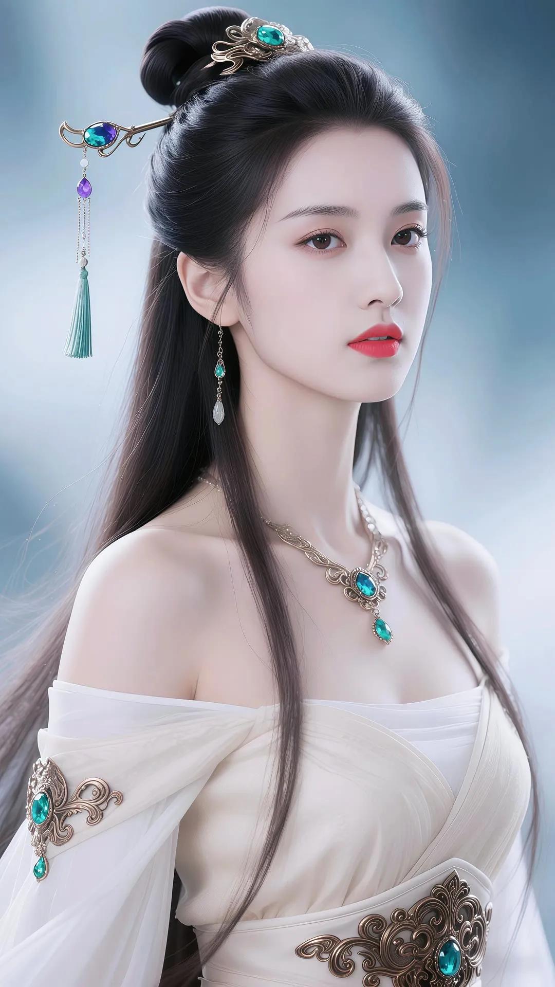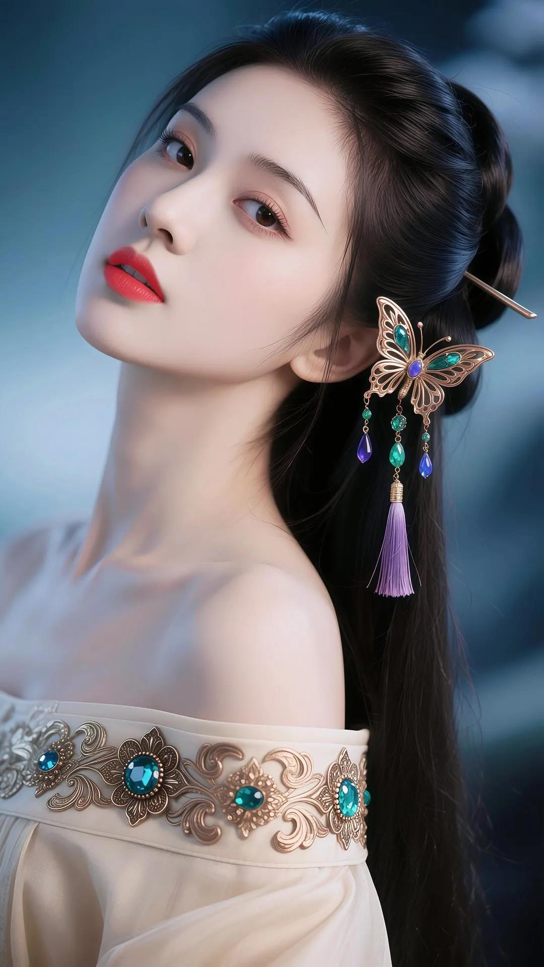梦幻古风少女,轻盈纱裙,珠光闪闪,宛如仙子降临。