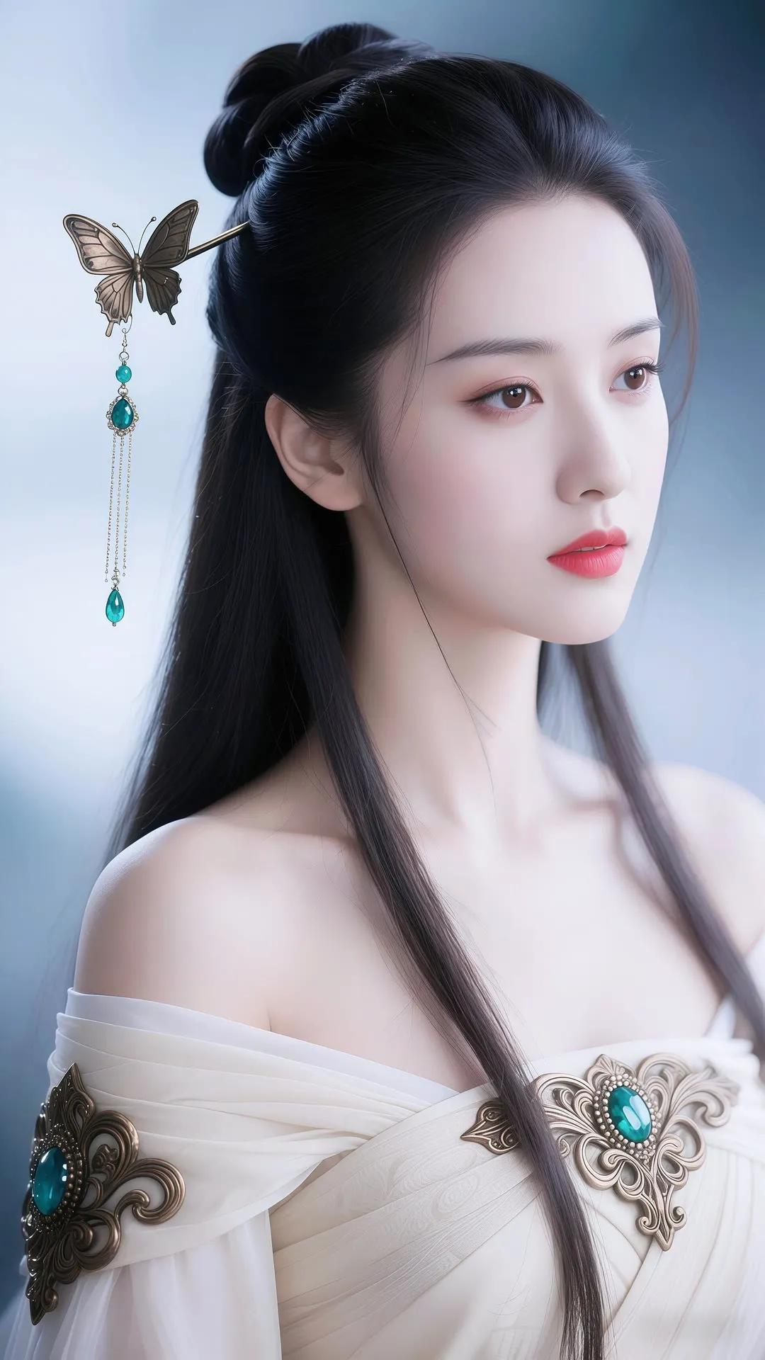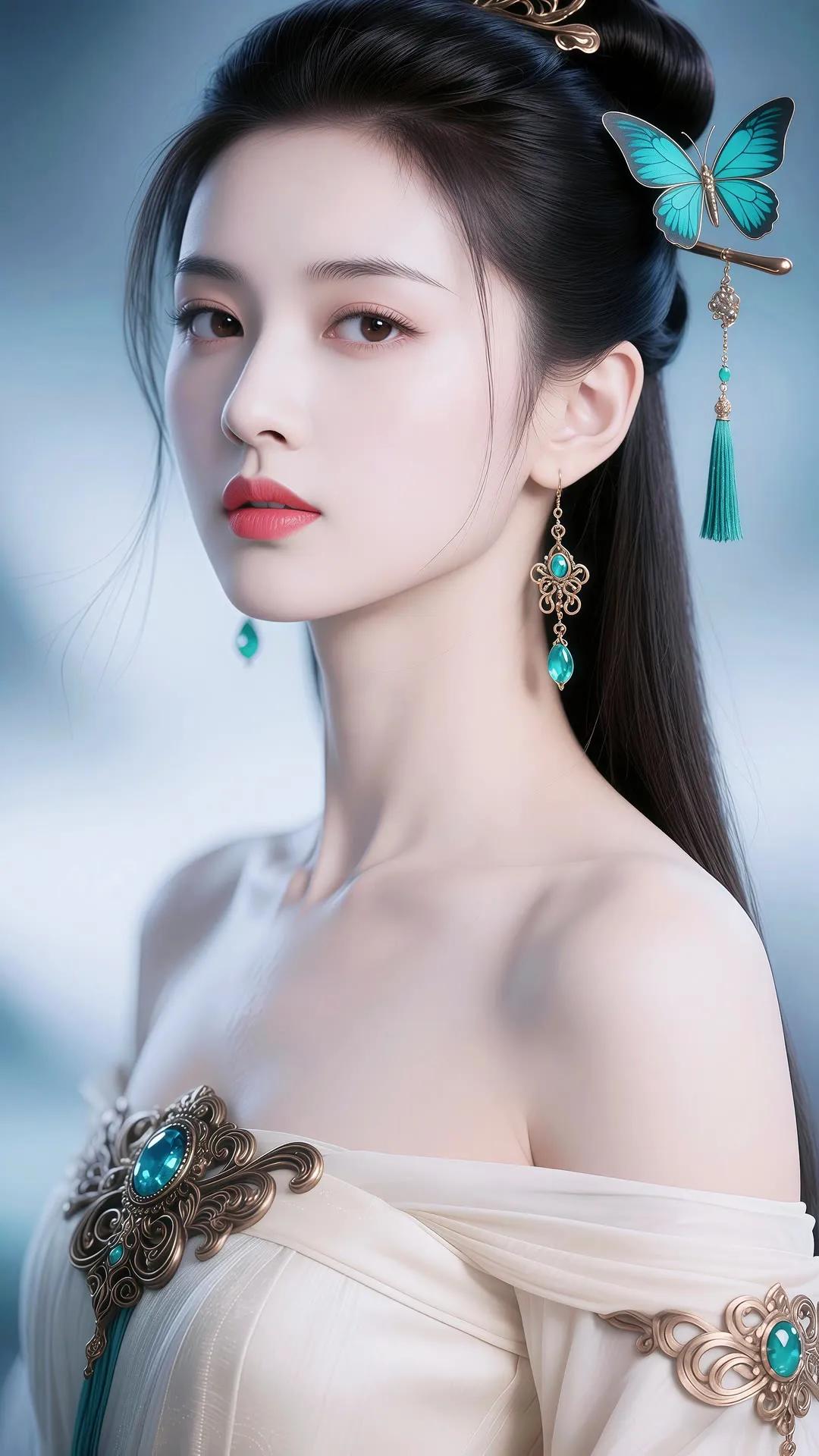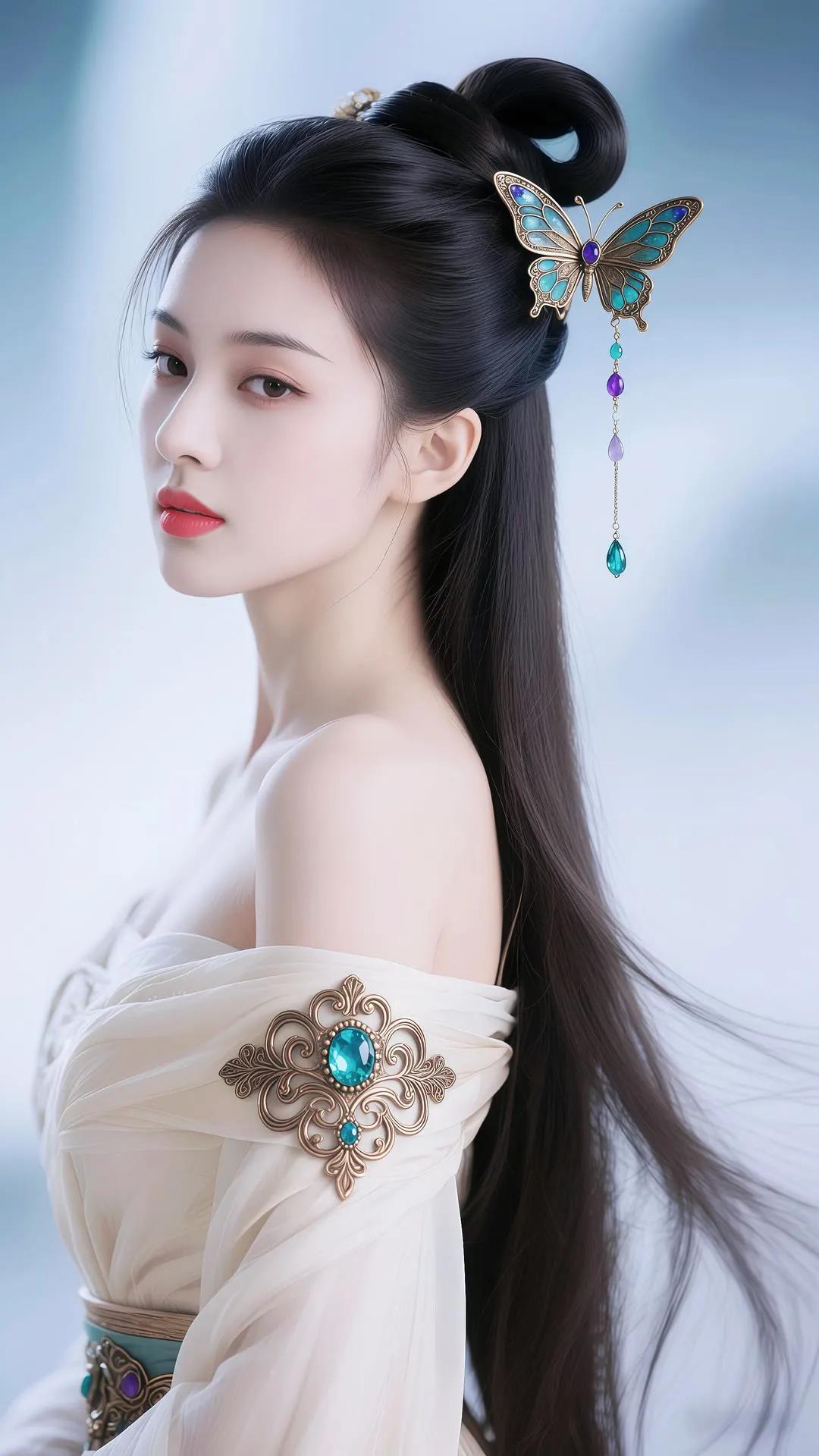 梦幻古风少女,轻盈纱裙,珠光闪闪,宛如仙子降临。