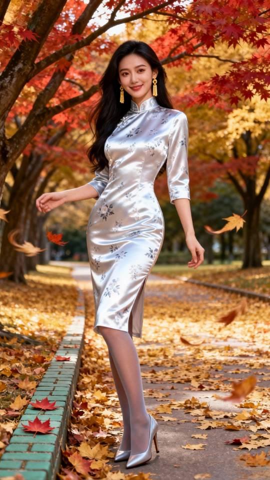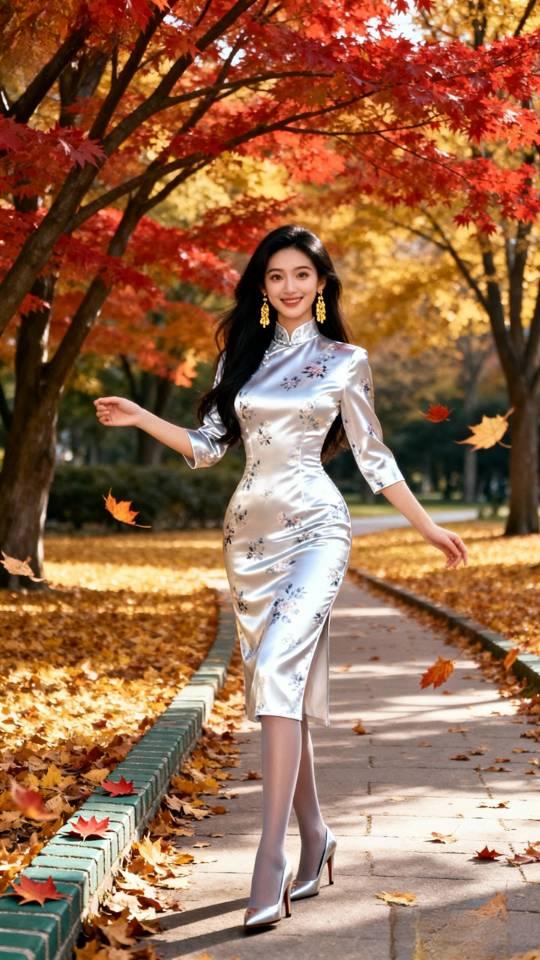 旗袍美女回眸一笑。旗袍 高雅气质美女