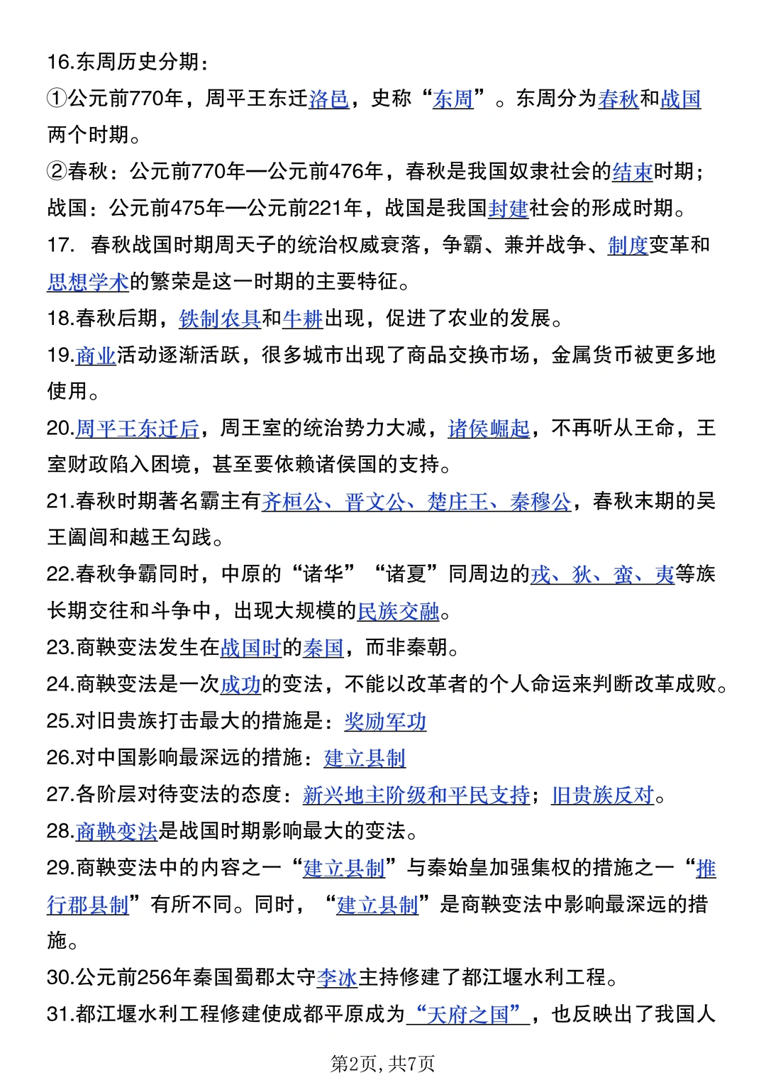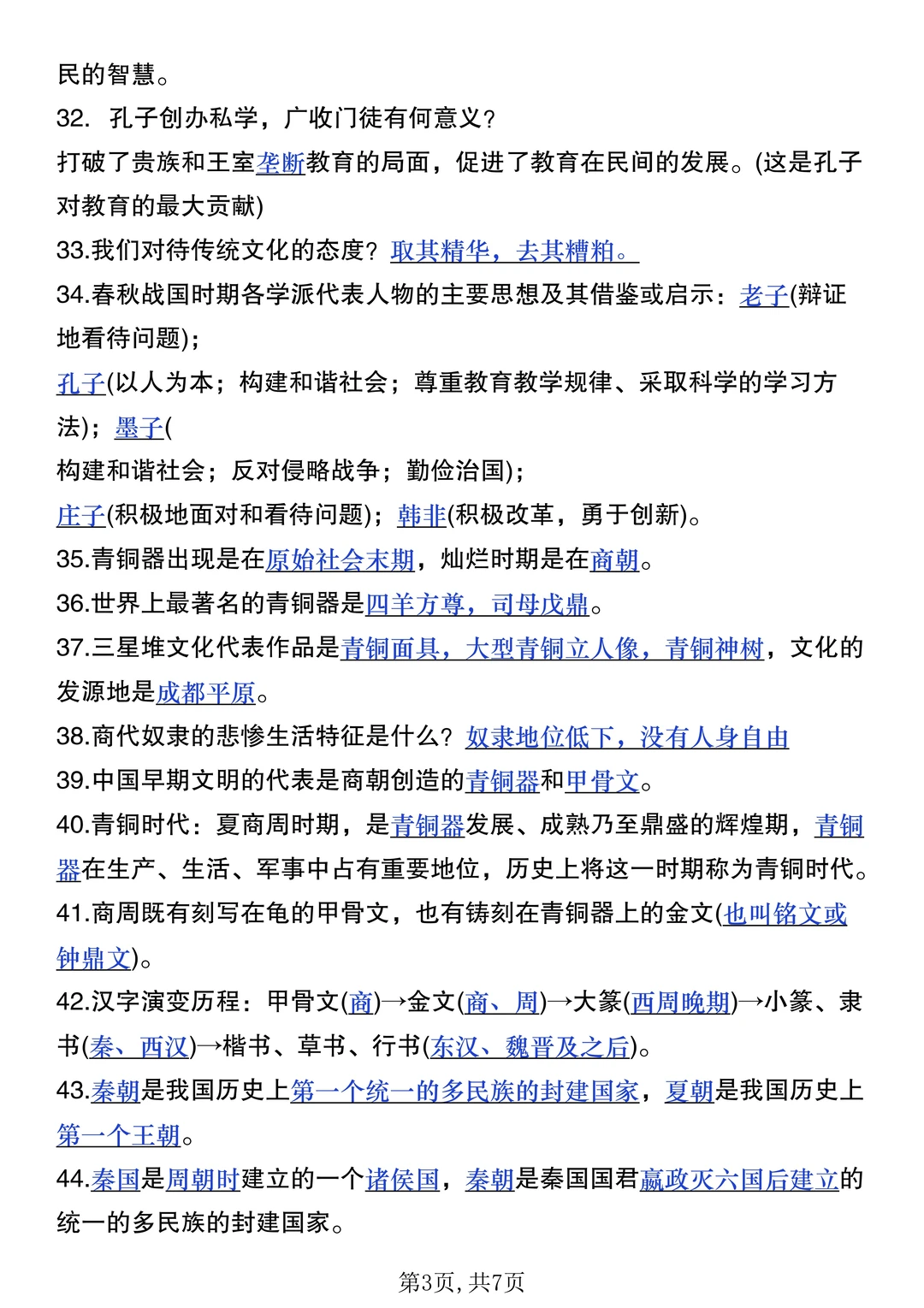 火箭班老师发的:七上历史每日一练小纸条