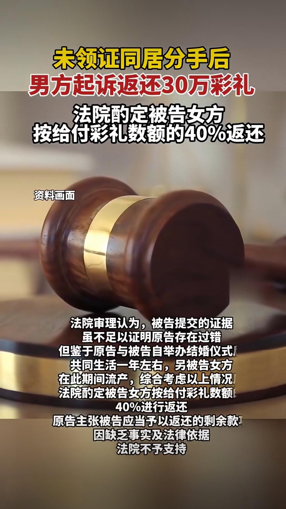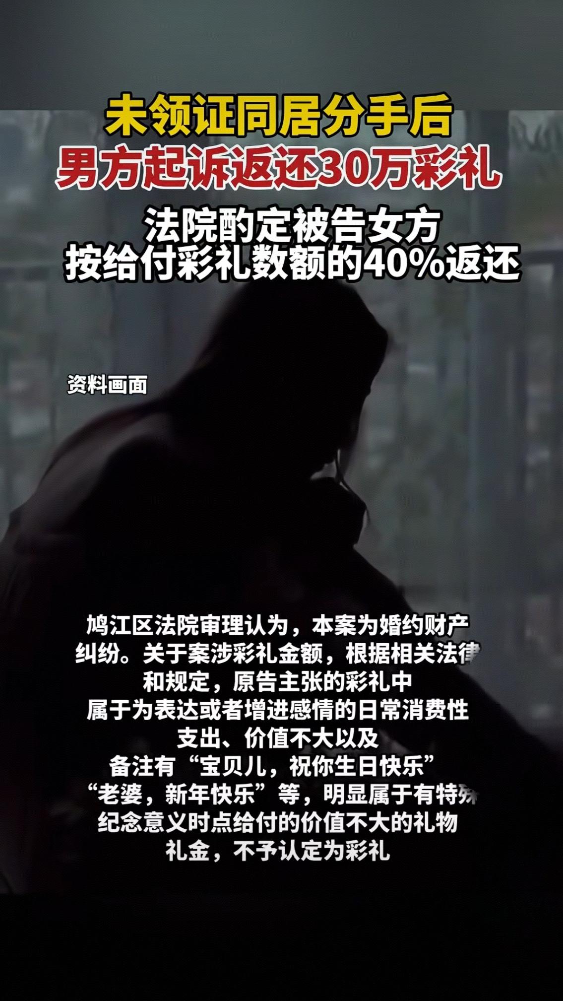 30万彩礼返还40%!未领证同居分手案引热议:感情散了,金钱该怎么算? 未领