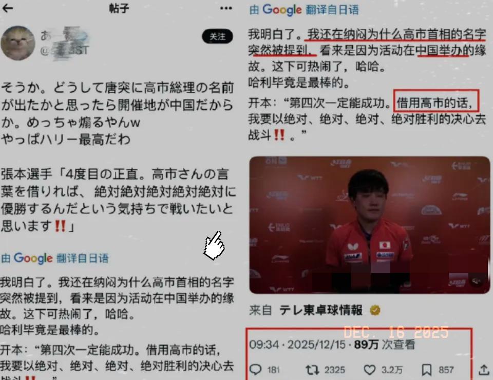 张本智和致敬高市早苗!日本民众称他是故意报复,比日本人还日本人。张本智和最近的行为越来越癫,有意还是无意? 这哪是无意之举,分明是揣着明白装糊涂的“皈依者狂热”!高市早苗因涉台错误言论遭中日两国正义人士反对,张本智和却在香港赛事上特意引用其言论立誓,还曾参拜靖国神社分支东乡神社,显然是主动迎合日本右翼。 体育无国界,但运动员有底线,他赢了比赛却输了良知,为了融入日本刻意背弃根源,本质是对历史和中国粉丝的双重伤害。 把个人前途绑在右翼战车,迟早会被反噬。 你觉得该如何对待这种触碰底线的运动员?