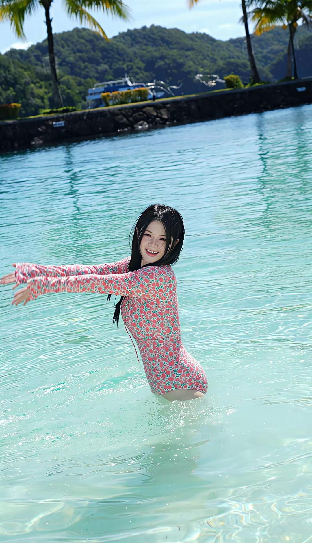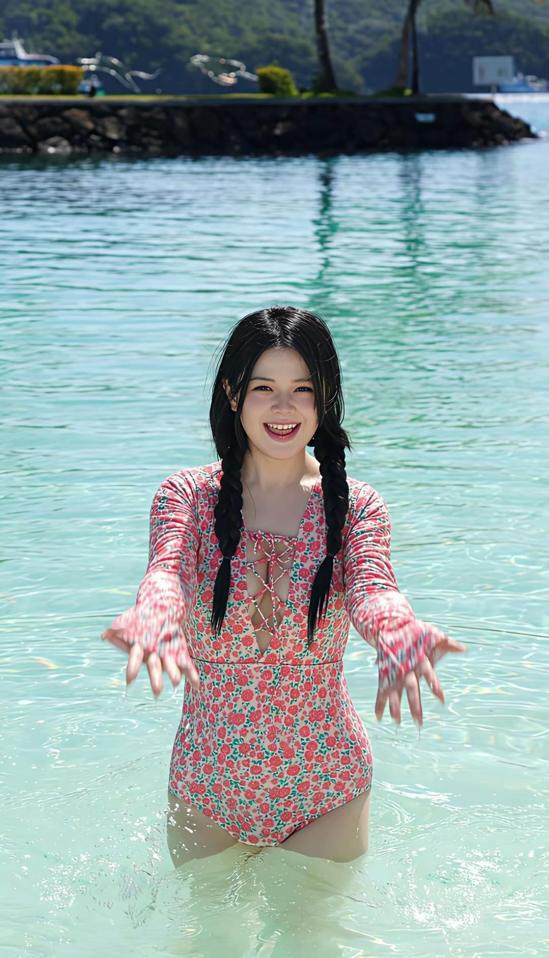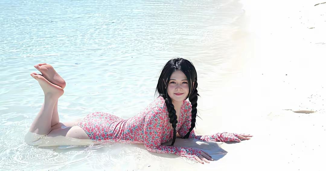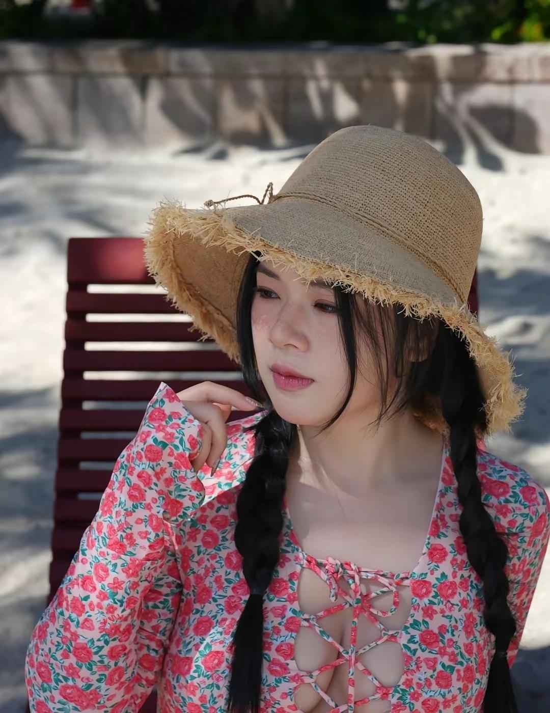 夏日沙滩上的甜美少女,花裙与草帽的完美搭配,享受阳光与海风。