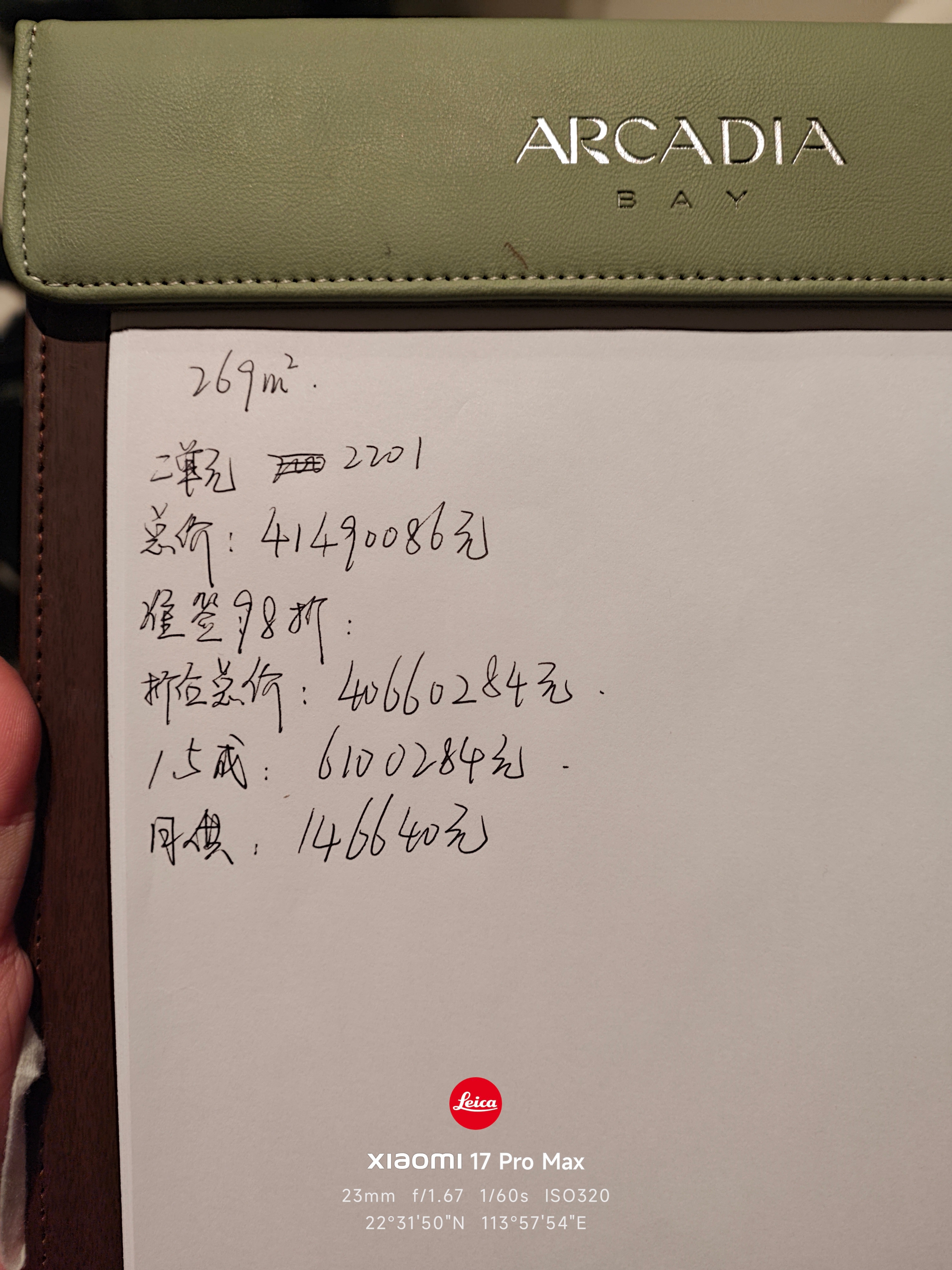 深圳湾沄玺又去看了,图一6楼的209平刚卖,3000万出头,只剩下最后一套209了。。。性价比高。月供明年年底才开始供楼,首付客户可以1.5成。269平的22楼4000万出头。随缘吧。 深圳