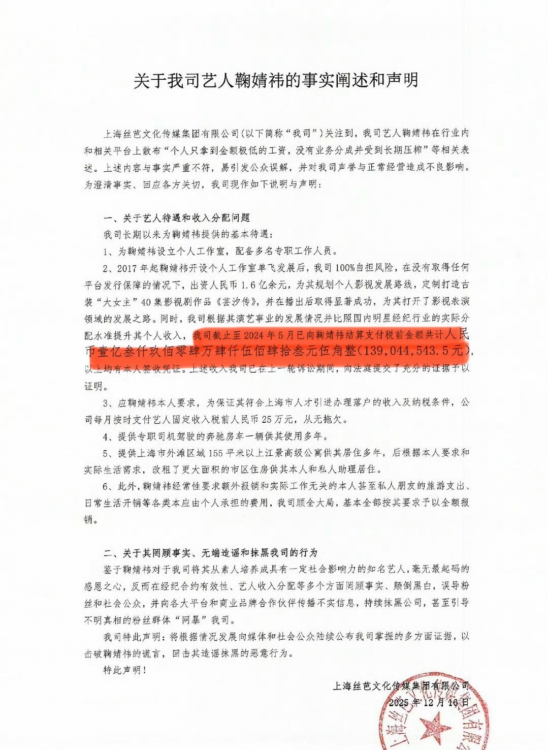 这波是真·撕破脸了?据悉,丝芭称已为鞠婧祎支付1.39亿,还列出豪华待遇清单: