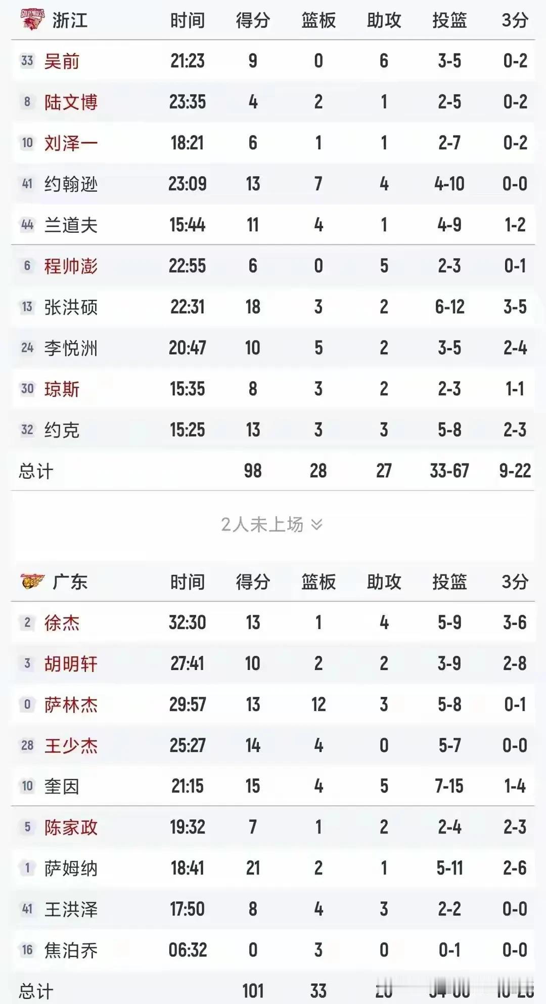 又是险胜,胡明轩的正负值是负的,他的三分球8中2,还有失误。还有,上焦泊乔还不如上张昊。
