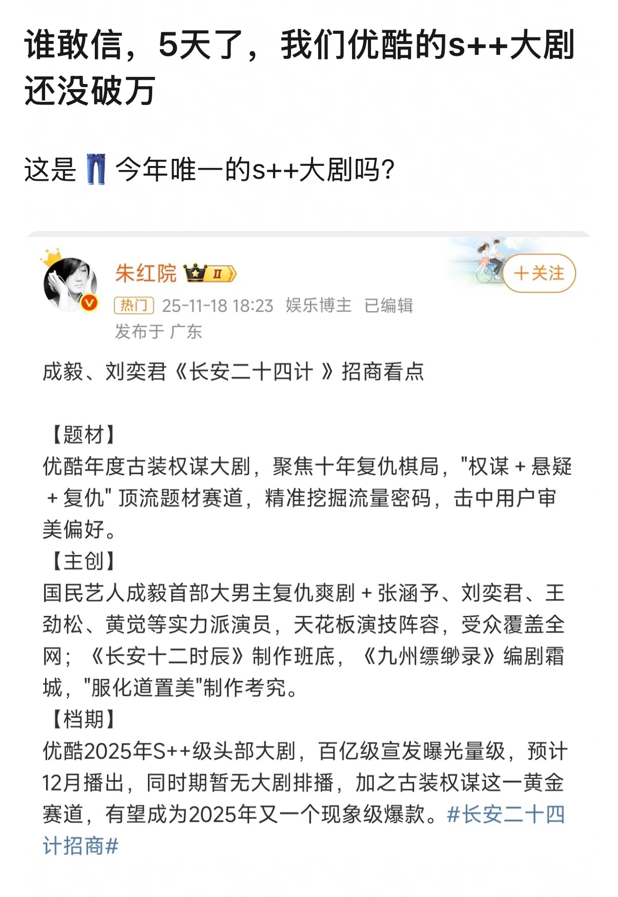 哇噻!伟小,《长安二十四计》大扑开!!仅600w左右,连绞尽脑汁的高开也没得吹了