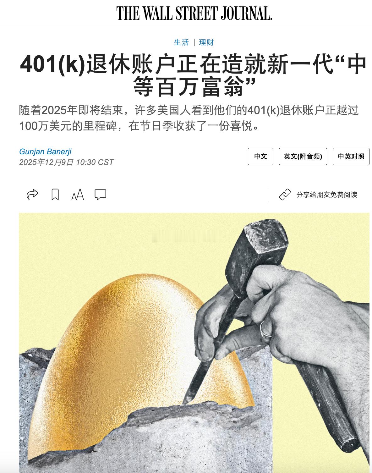 美国股市连续三年的大涨使得美国退休金账户401K净值不断攀升,美国的百万富翁创了新高。但我认为,这反而或许是一种反向风向标志
