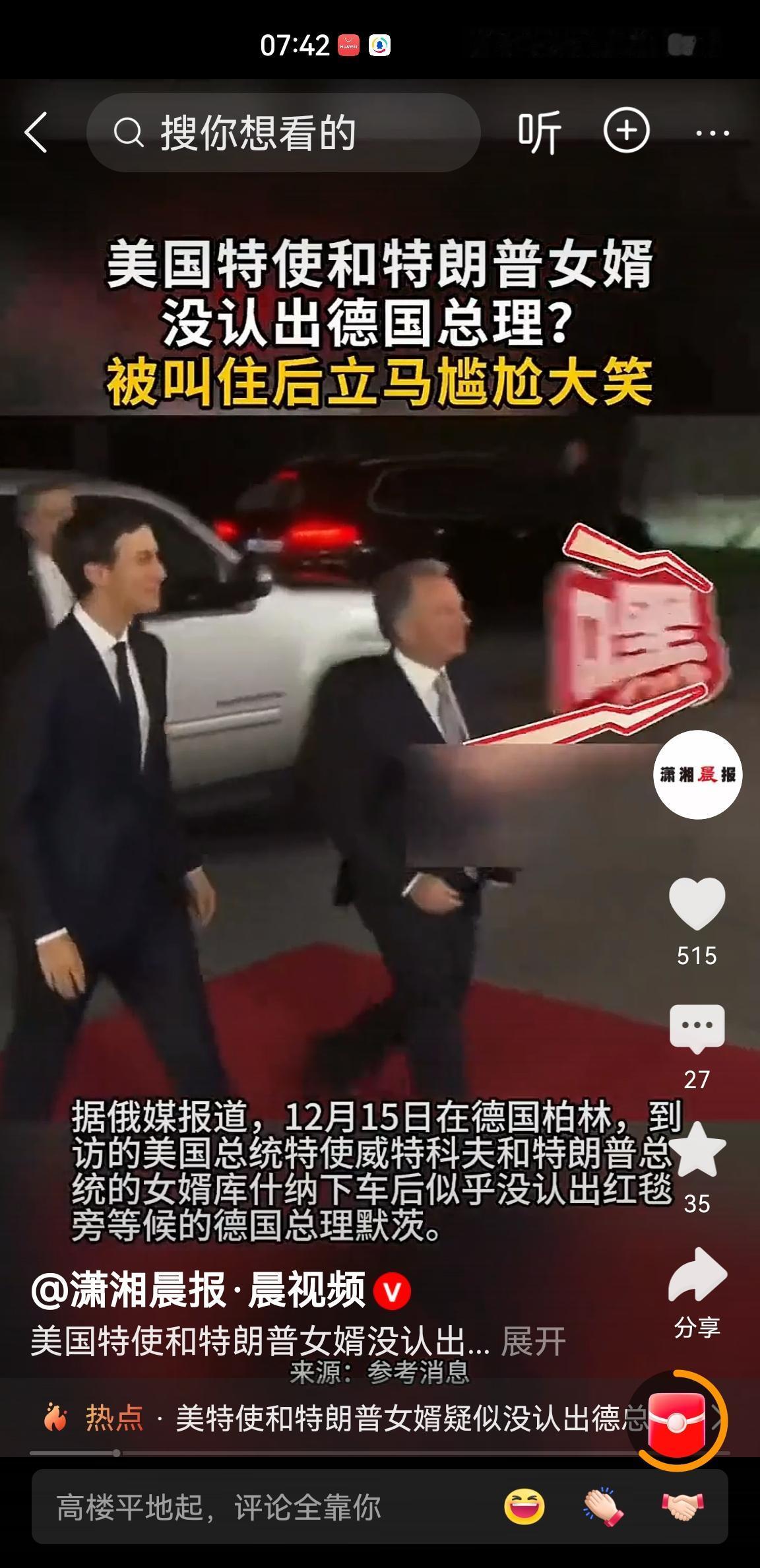 12月15日,美国特使威特科夫和特朗普总统女婿库什纳到访德国柏林,德国总理默茨到场迎接。 总统女婿陪同总统特使一同到访欧洲,开启乌克兰和平协议的修订进程,这可能在世界上也不多见!因为特朗普女婿就是一个纯粹的商人,他怎么会和总统特使一起到访呢?懂得人都懂是吧?
