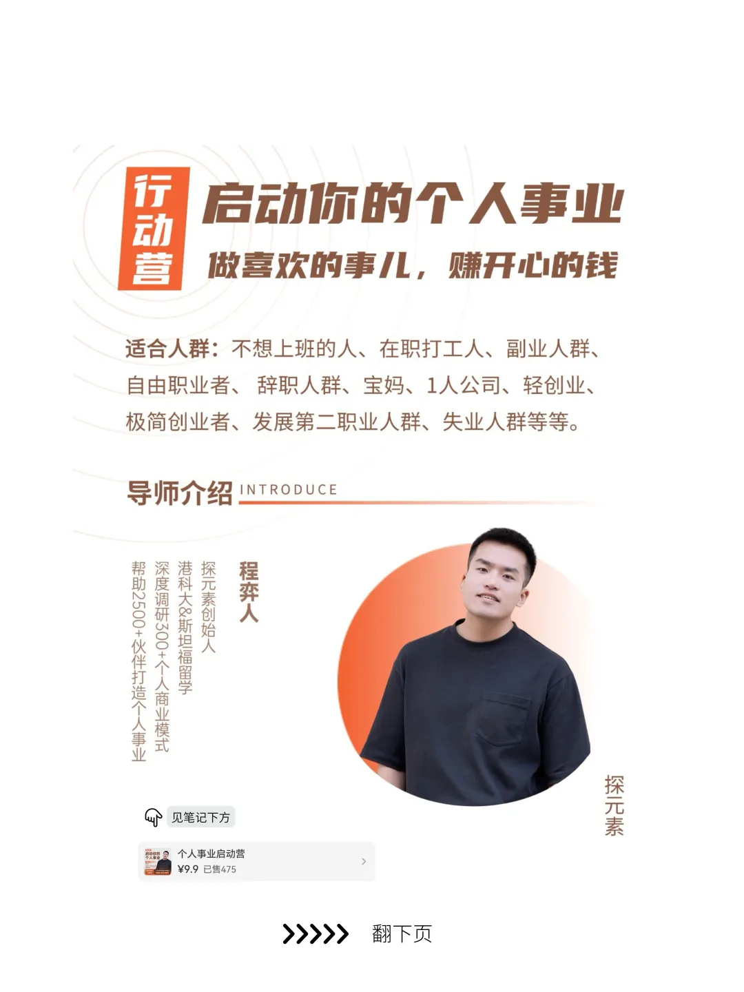 个人事业 自由职业 职业规划 搞钱 一人公司 个人成长 搞钱思维 职业转型 内在觉醒 探元素