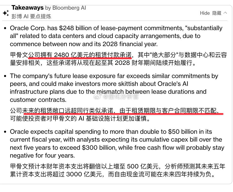 没人还敢说美国AI不是城投了吧?甲骨文这都把资管新规之前咋们资金池那套借短投长都借鉴过来了。。。。。。。。。美国的AI基建大城投牛逼AI美股