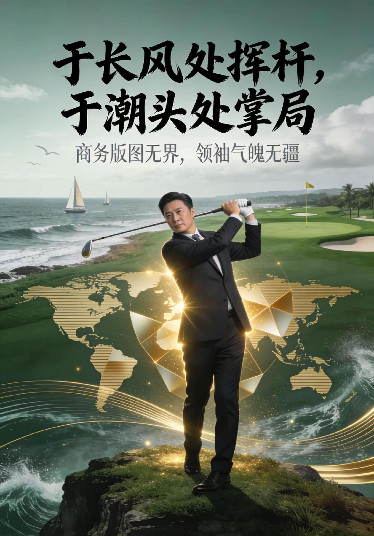 高尔夫男神女神挥杆风云·商界乾坤 绿茵如砥,长风漫卷。精英领袖执杆而立,目光所及,尽是旷野无垠。 一杆挥落,划破天际,是力量与精准的共生,是格局与远见的共鸣。高尔夫十八洞,洞洞藏乾坤;商界千万里,里里见胸襟。他们以球杆丈量世界经纬,以沉稳执掌商海风潮。 每一记挥杆,皆为对未来的笃定;每一次推杆,都是对格局的诠释。商务版图无界,领袖气魄无疆。于绿茵挥杆定旷野,于风云掌局定天下。以球杆探索未知,以格局运筹帷幄,他们是时代弄潮儿,以无畏勇气与卓越能力,书写传奇,引领商业巨轮驶向辉煌彼岸。__武玉强执笔