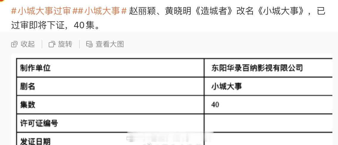 赵丽颖黄晓明《小城大事》过审了