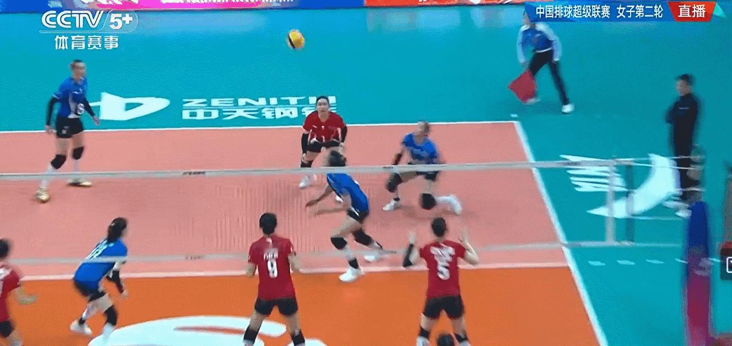 江苏本场比赛一传差,倪非凡笫一局接飞两个,到位球少,二传全是调整攻,