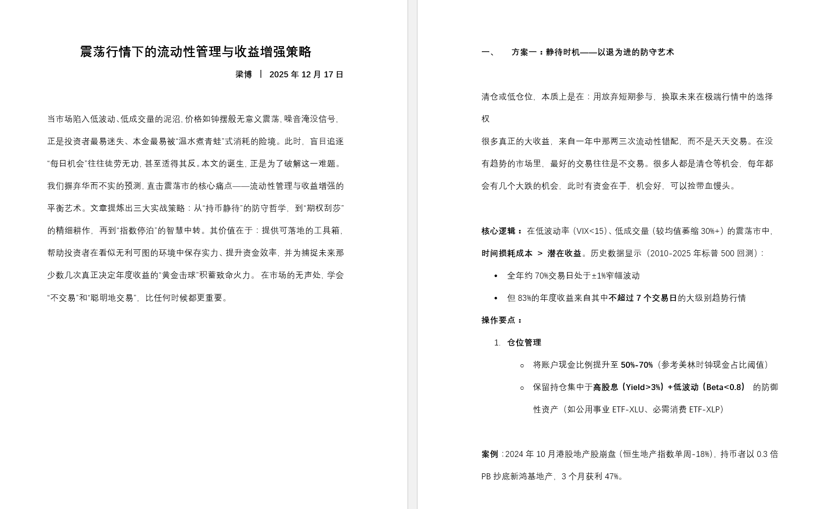 第15篇小作文出炉了,写了下震荡市场下的应对策略,安排下分发给合订本用户。。 这篇文章虽然不长,耗时却多,集中了很多超级智慧,如果有人能领悟到一二,理解轻仓的妙处,一定会回来感谢我的。。