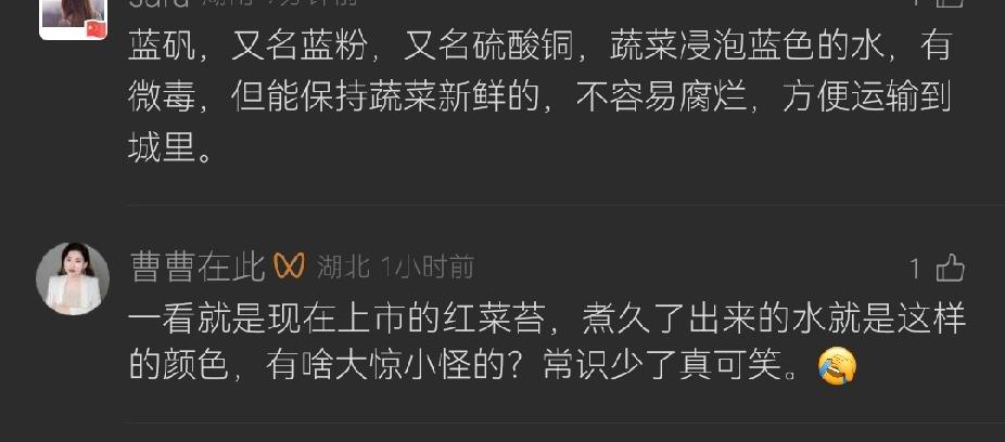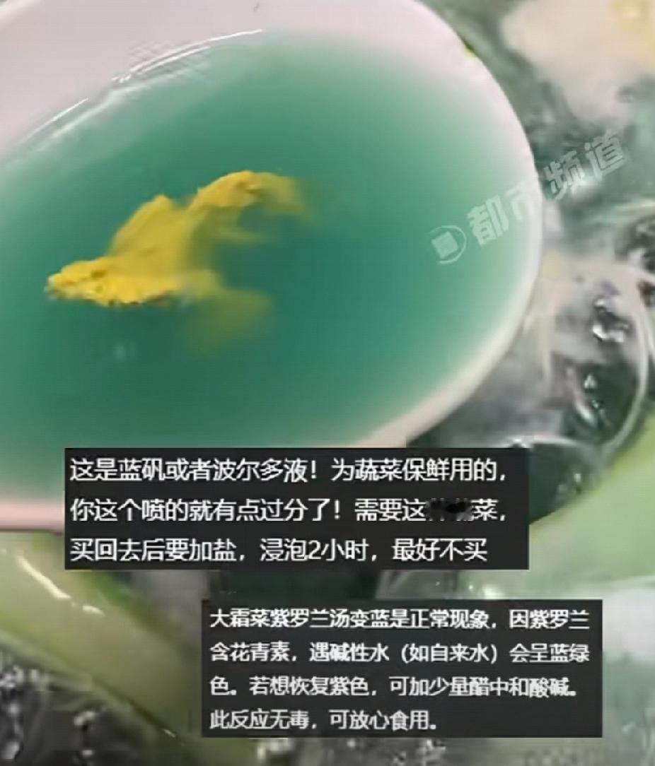 12月17日,江苏一博主发视频展示自己做的青菜煮面,面汤竟然呈现诡异的蓝色,直呼:“这能吃吗?” 博主称自己就是做的普通的青菜煮面,以前煮出来的汤都是清澈见底的,带着一点微微的青绿色。而这次煮出来的颜色明显不同,是类似于油漆的蓝色。 这种情况博主也是第一次见,这到底是怎么回事呢? 大部分网友说是青菜表面喷洒了蓝矾导致的,学名硫酸铜,蓝矾是有毒的,但是喷洒在蔬菜表面,就能维持蔬菜的新鲜,延长保鲜期。 还有网友说博主买的这种蔬菜叫做红菜苔,红菜苔煮久了就会呈现出这种颜色。网上说红菜苔煮出来的水通常是紫红色或者淡红色,但是加入盐后就会有一点偏蓝色。 富含花青素的蔬菜煮水加盐都会或多或少的呈现出蓝色。这种情况是没有毒的,可以放心食用。 但是博主这个汤已经不是偏蓝色,而是正儿八经的蓝色啊!还是富含花青素的蔬菜也会呈现出这种蓝色呢? 所以说,博主这碗面,到底该能不能吃呢?到底是什么原因导致的呢?对此,你怎么看呢? 食品安全